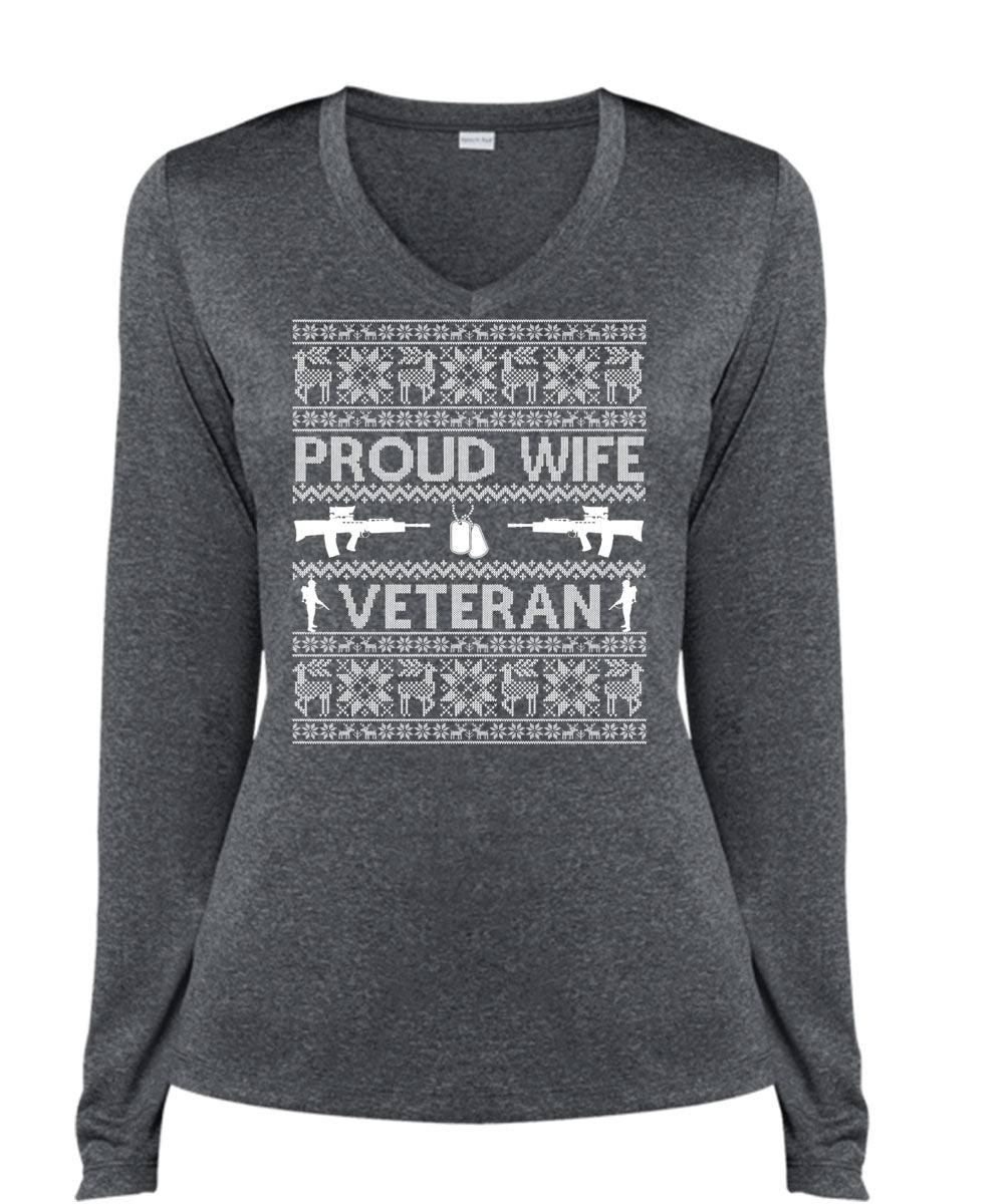Proud Wife Veteran T Shirt, Being A Veteran T Shirt, Cool Shirt (Ladies LS Heather V-Neck)