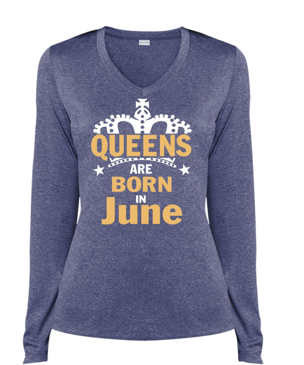 Queens Are Born In June T Shirt, Being A Wife T Shirt, Cool Shirt (Ladies LS Heather V-Neck)