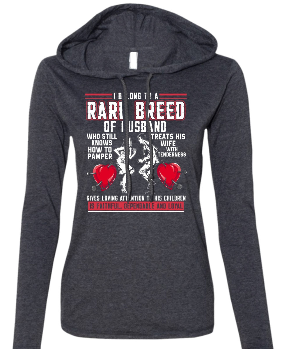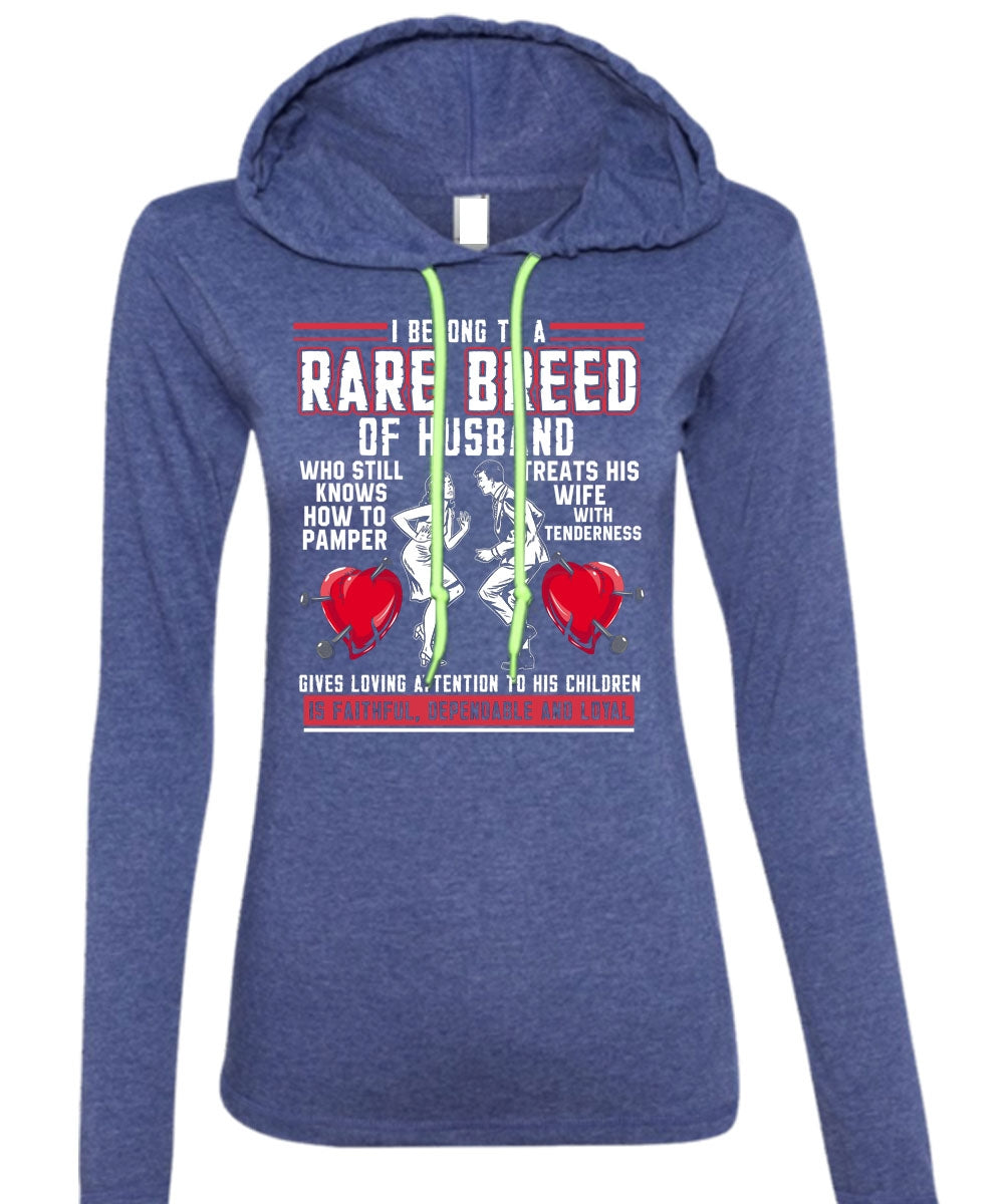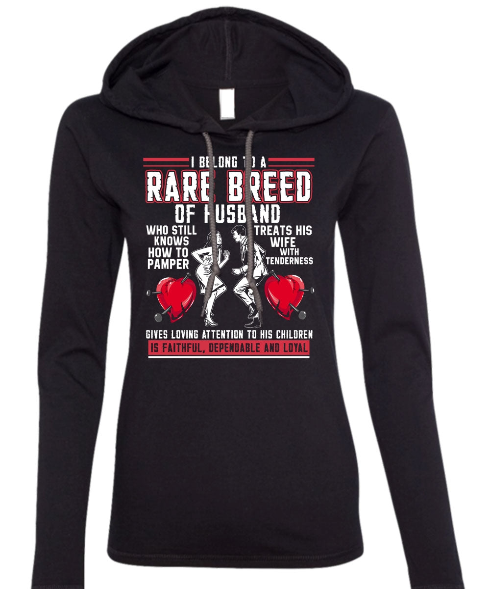 Rare Breed Of Husband T Shirt, Treats His Wife T Shirt (Anvil Ladies Ringspun Hooded)