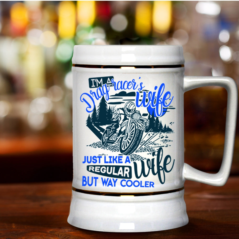 Regular Wife Beer Stein 22oz, I'm A Drag Racer's Wife Beer Mug