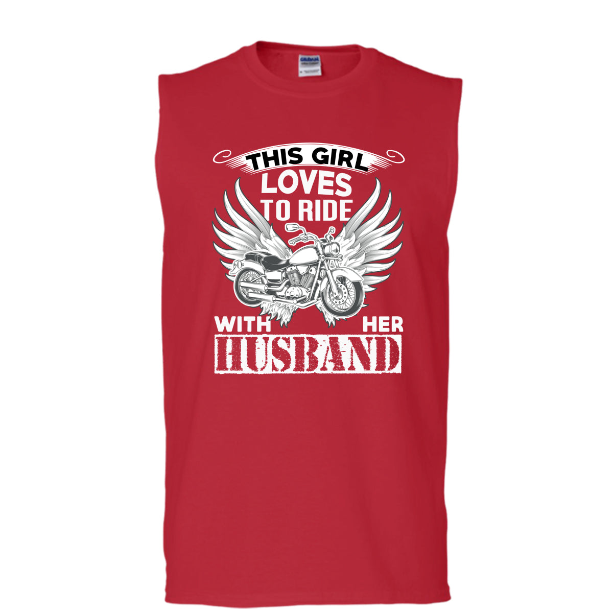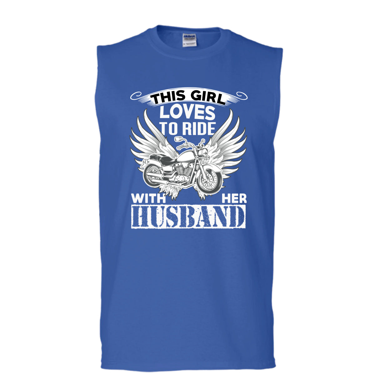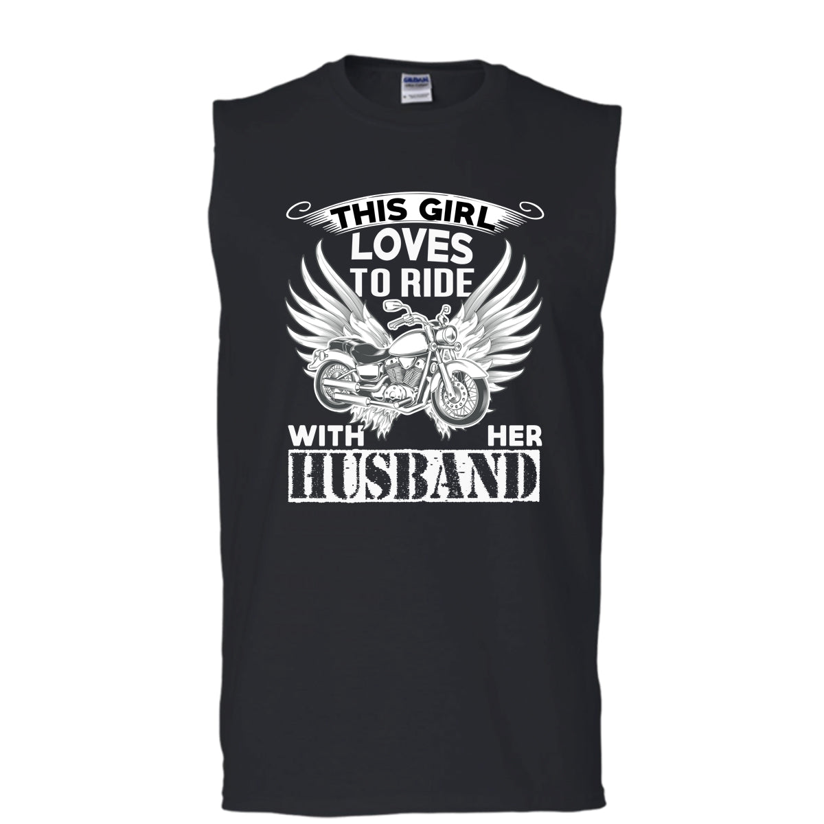 Rider's Wife T Shirt, This Girl Love To Ride With Her Husband T Shirt, Cool T Shirt (Men's Cotton Sleeveless)