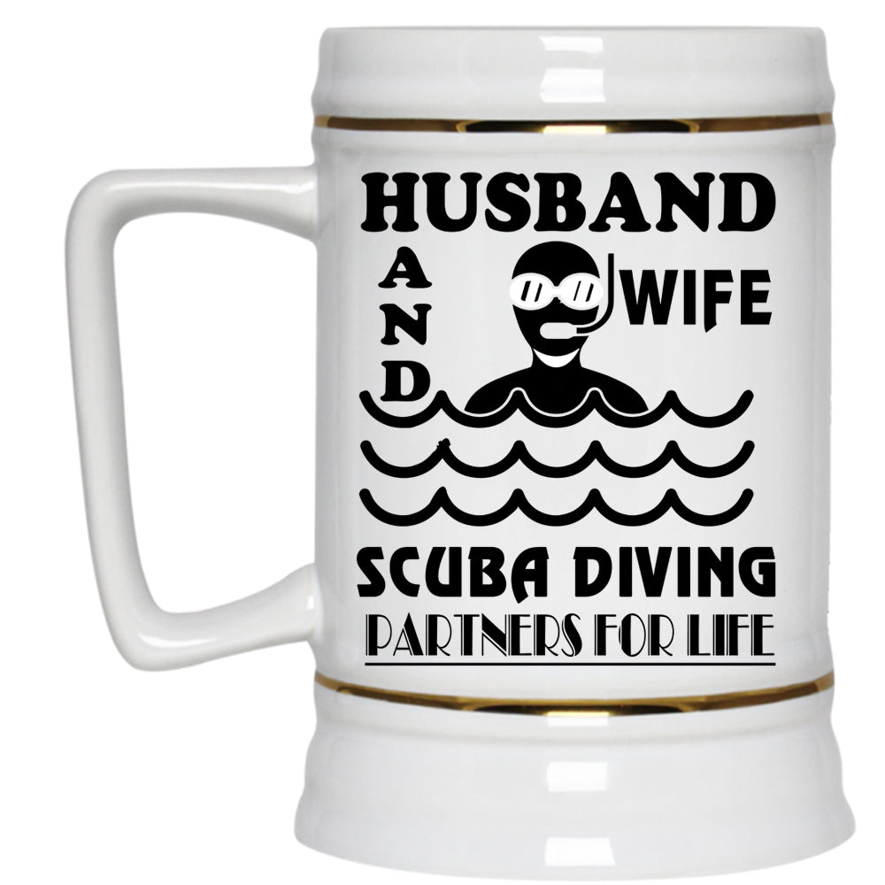 Scuba Diving Partners For Life Beer Stein 22oz, Husband And Wife Beer Mug