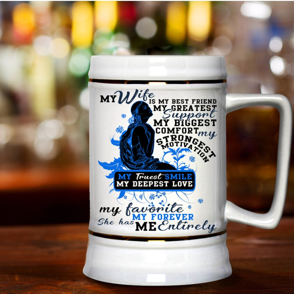 She has My Entirely Beer Stein 22oz, My Wife Is My Best Friend Beer Mug
