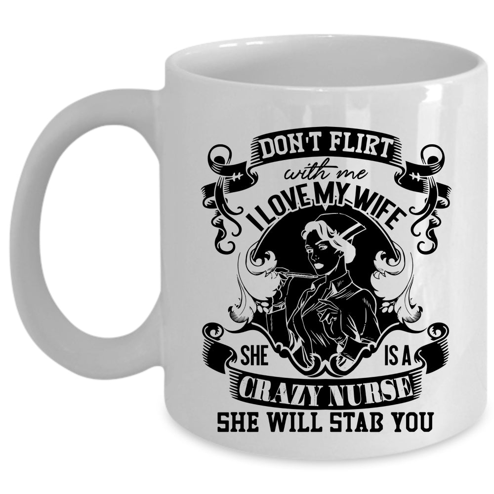 She Is A Crazy Nurse Coffee Mug, I Love My Wife Cup
