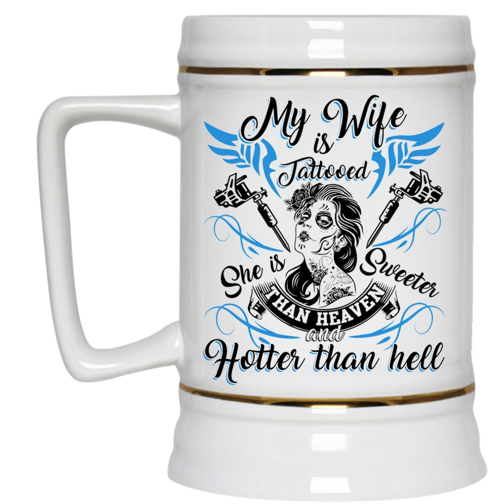 She Is Sweeter Than Heaven Beer Stein 22oz, My Wife Is Tattooed Beer Mug