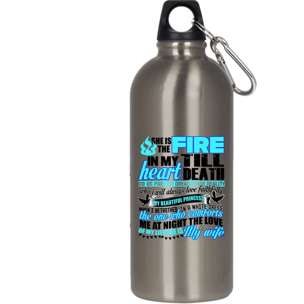 She Is The Fire In My Heart 20 oz Stainless Steel Bottle,She Is My Wife Outdoor Sports Water Bottle