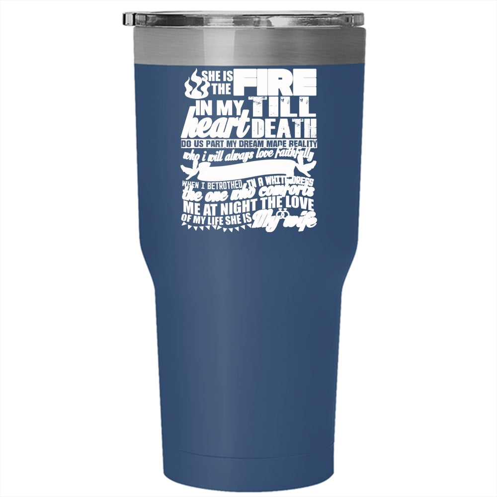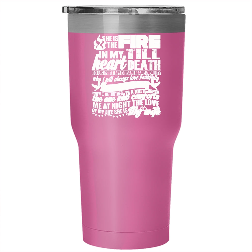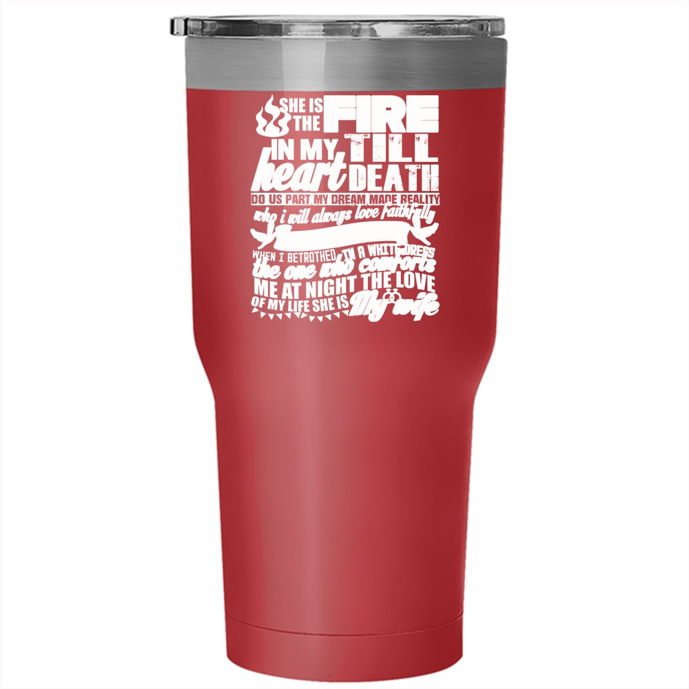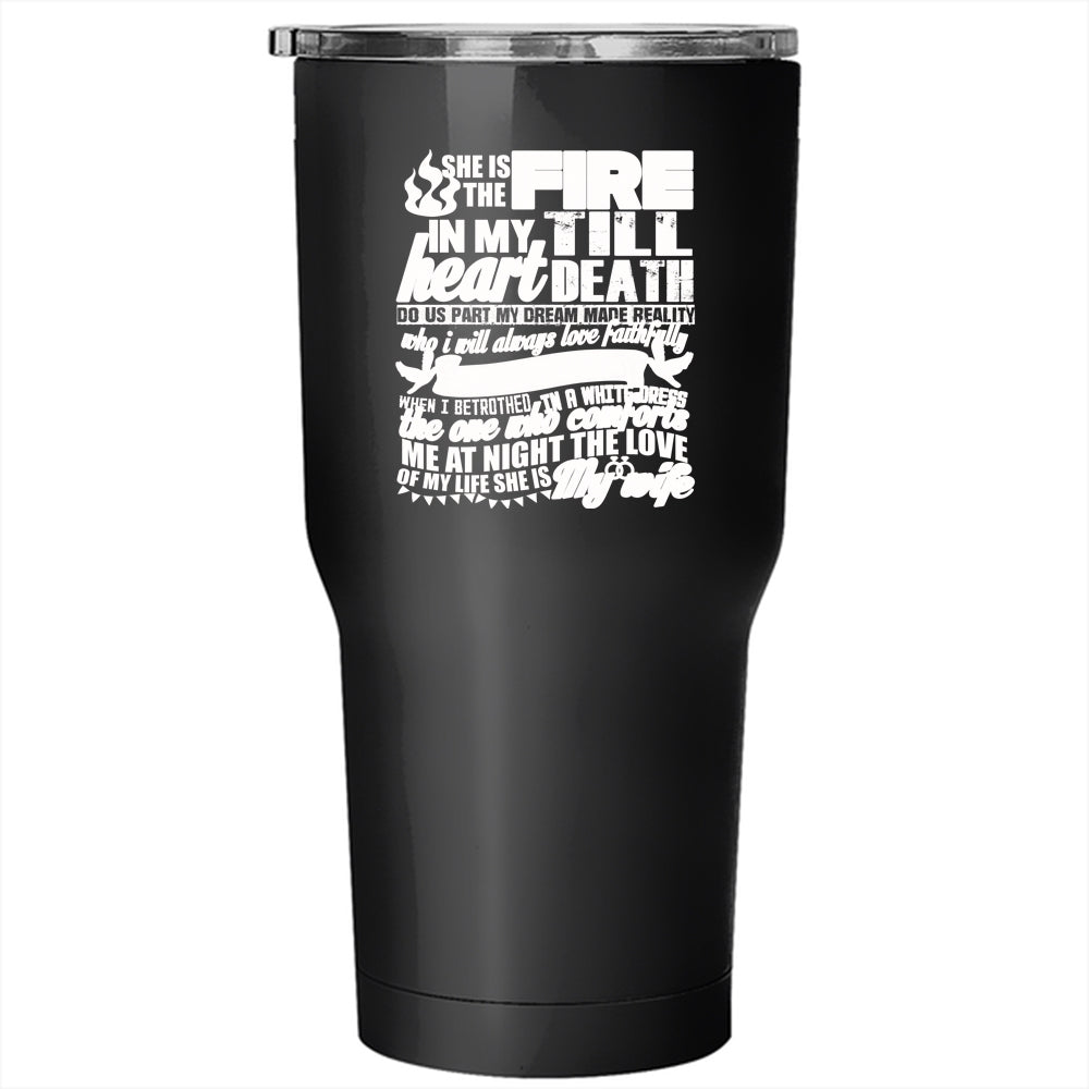 She Is The Fire In My Heart Tumbler 30 oz Stainless Steel, She Is My Wife Travel Mug