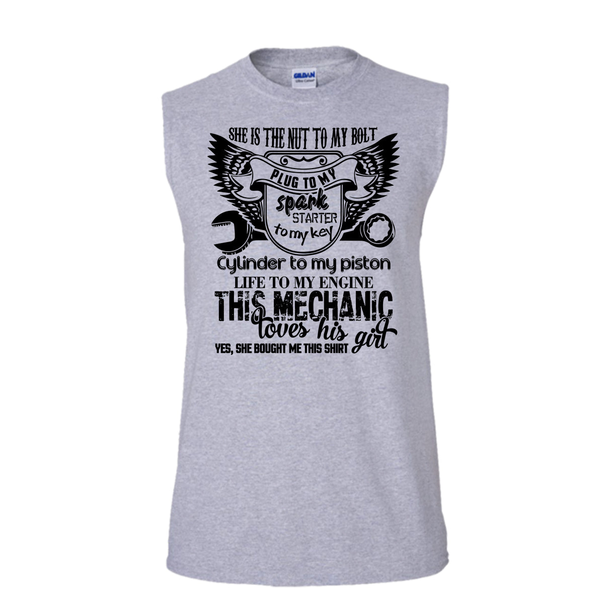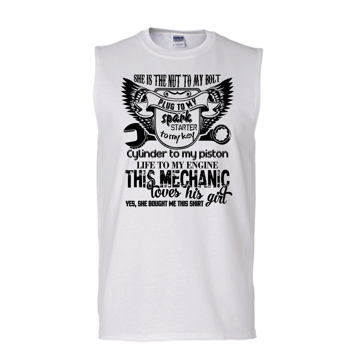 She Is The Nut To My Bolt T Shirt, Coolest Mechanic Husband T Shirt, Awesome t-shirts (Men's Cotton Sleeveless)