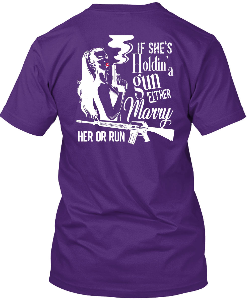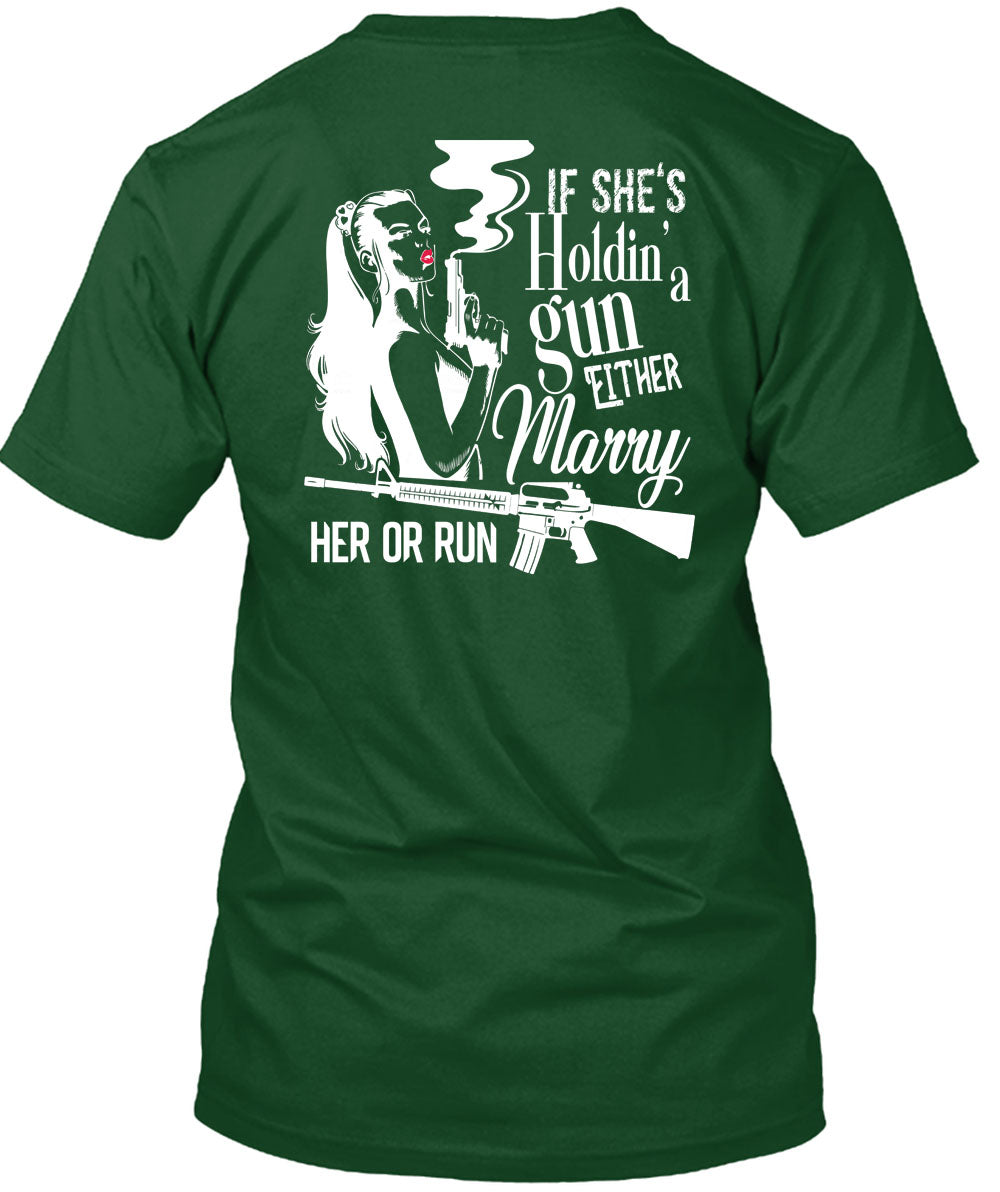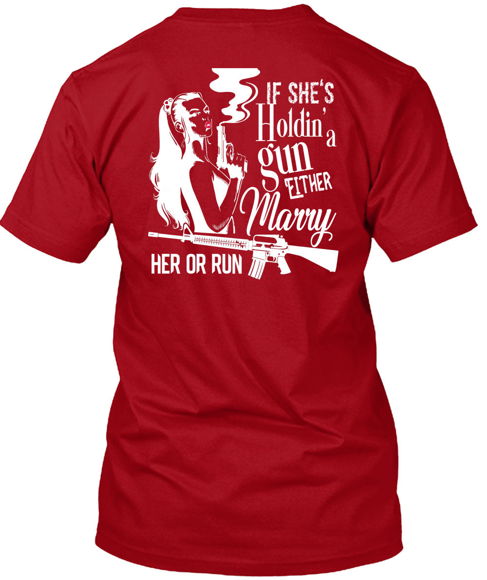 She's Holding A Gun Either Marry Her Or Run T Shirt, I Love My Wife T Shirt