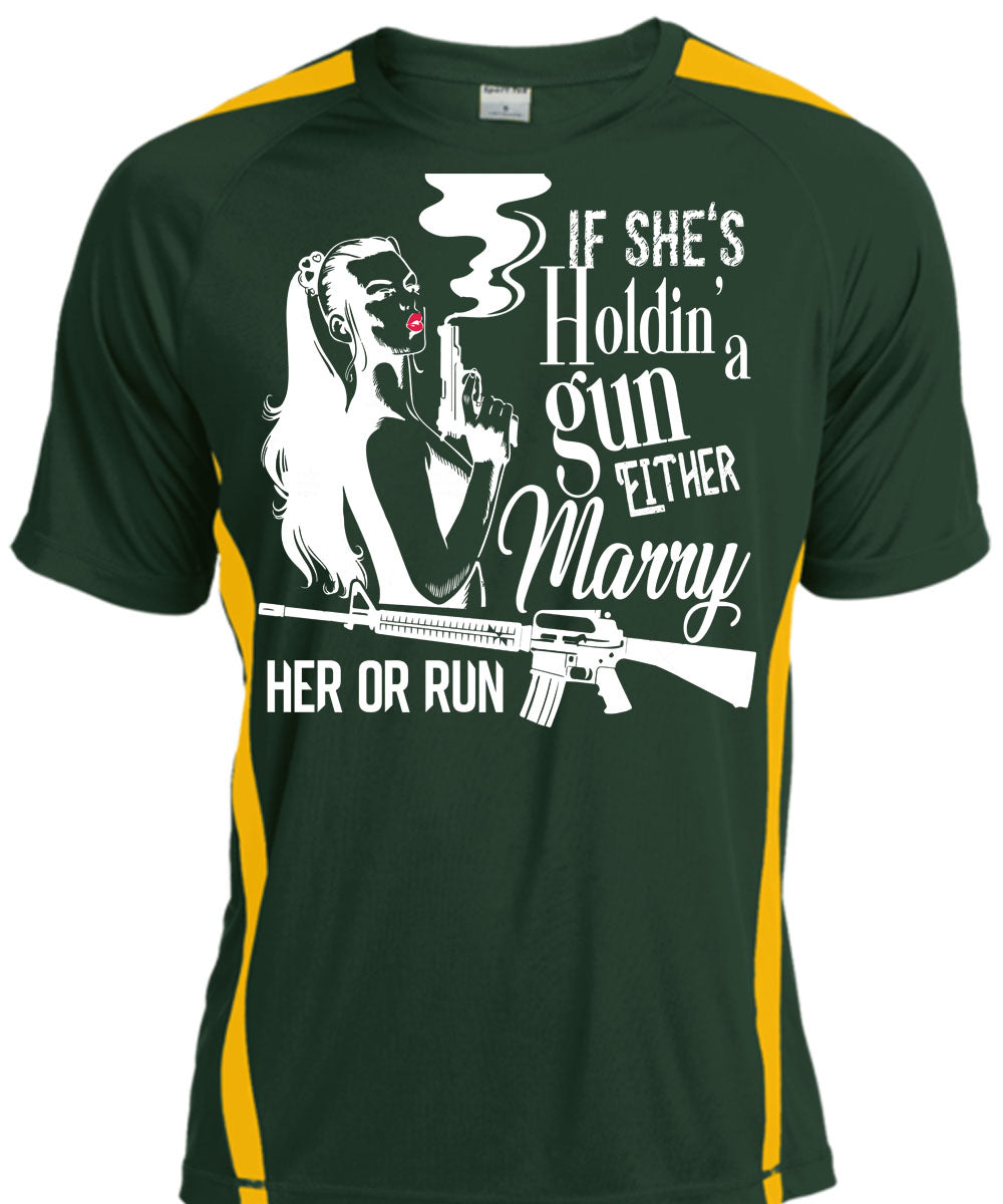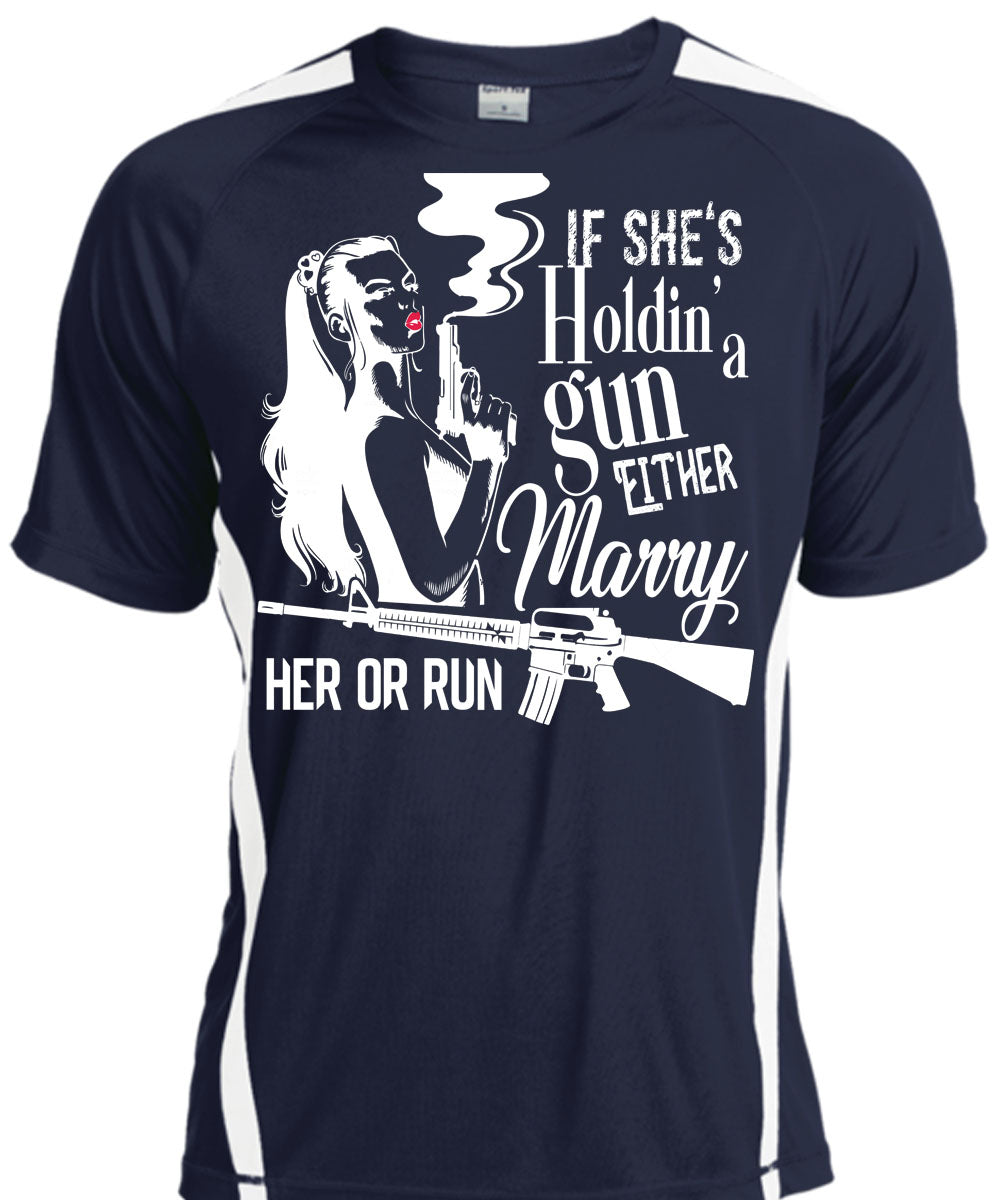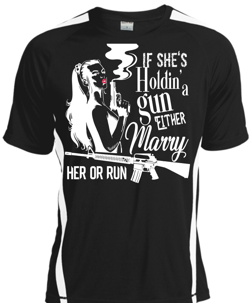 She's Holding A Gun Either Marry Her Or Run T Shirt, I Love My Wife T Shirt, Cool Shirt