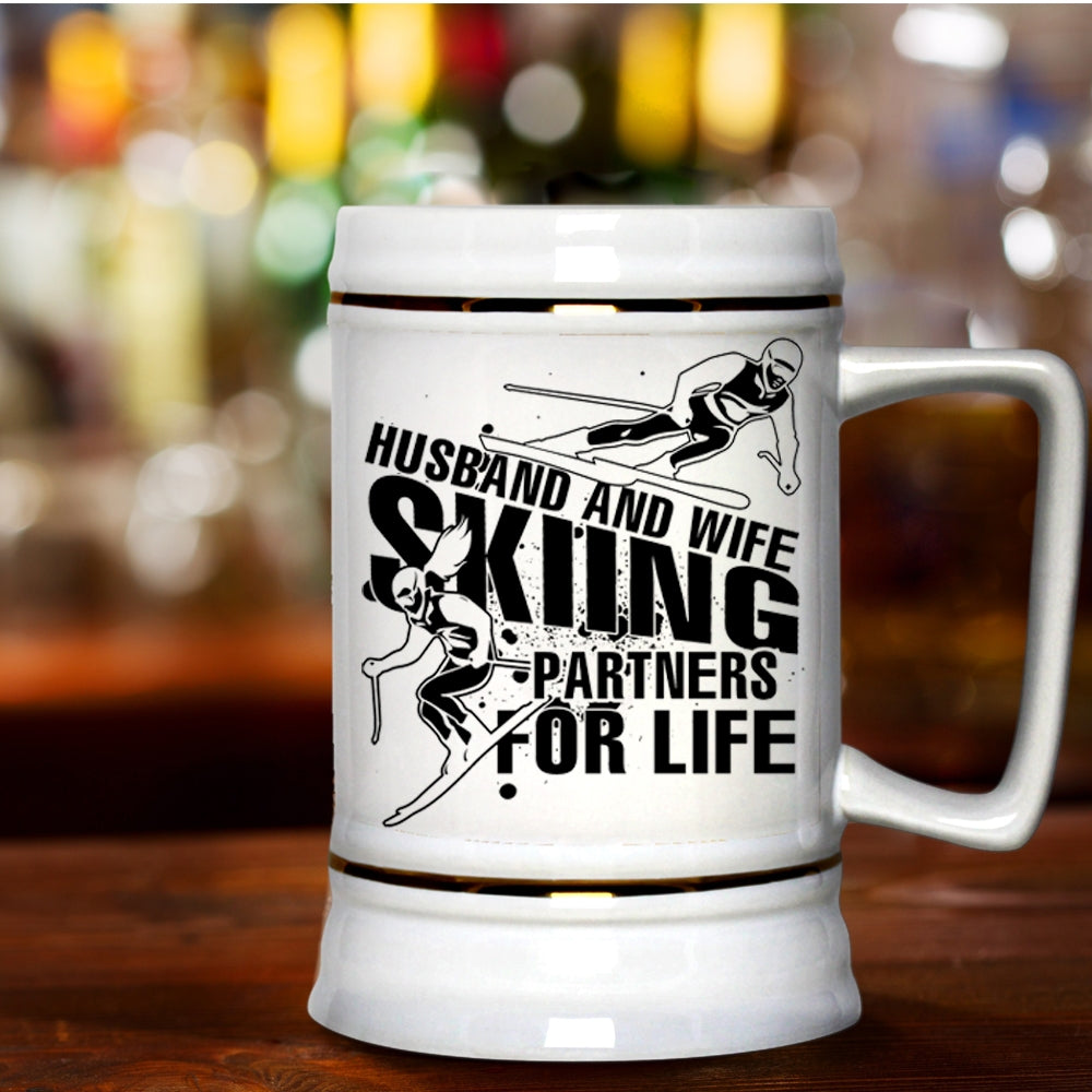 Skiing Partners For Life Beer Stein 22oz, Husband And Wife Beer Mug
