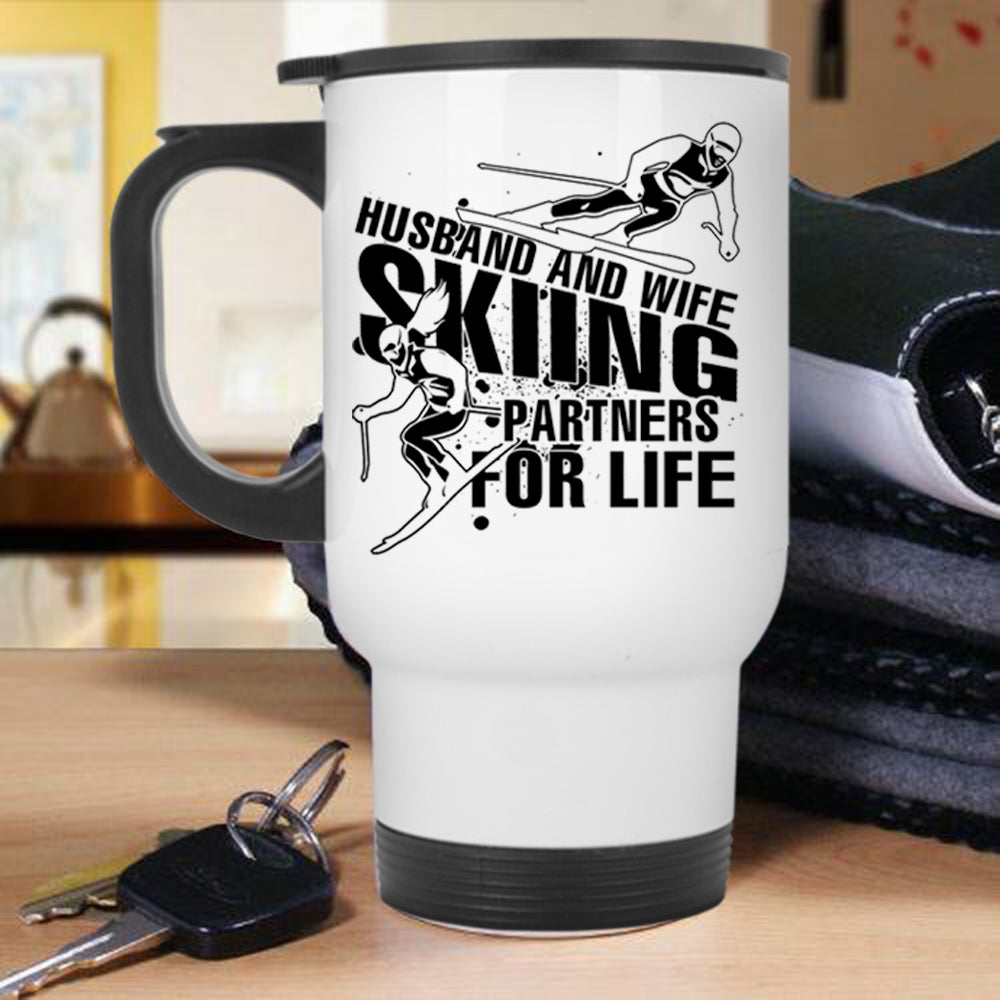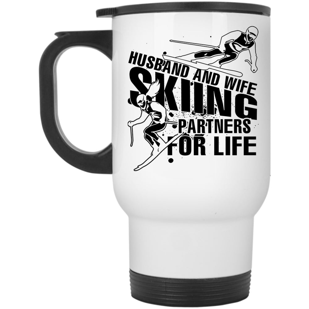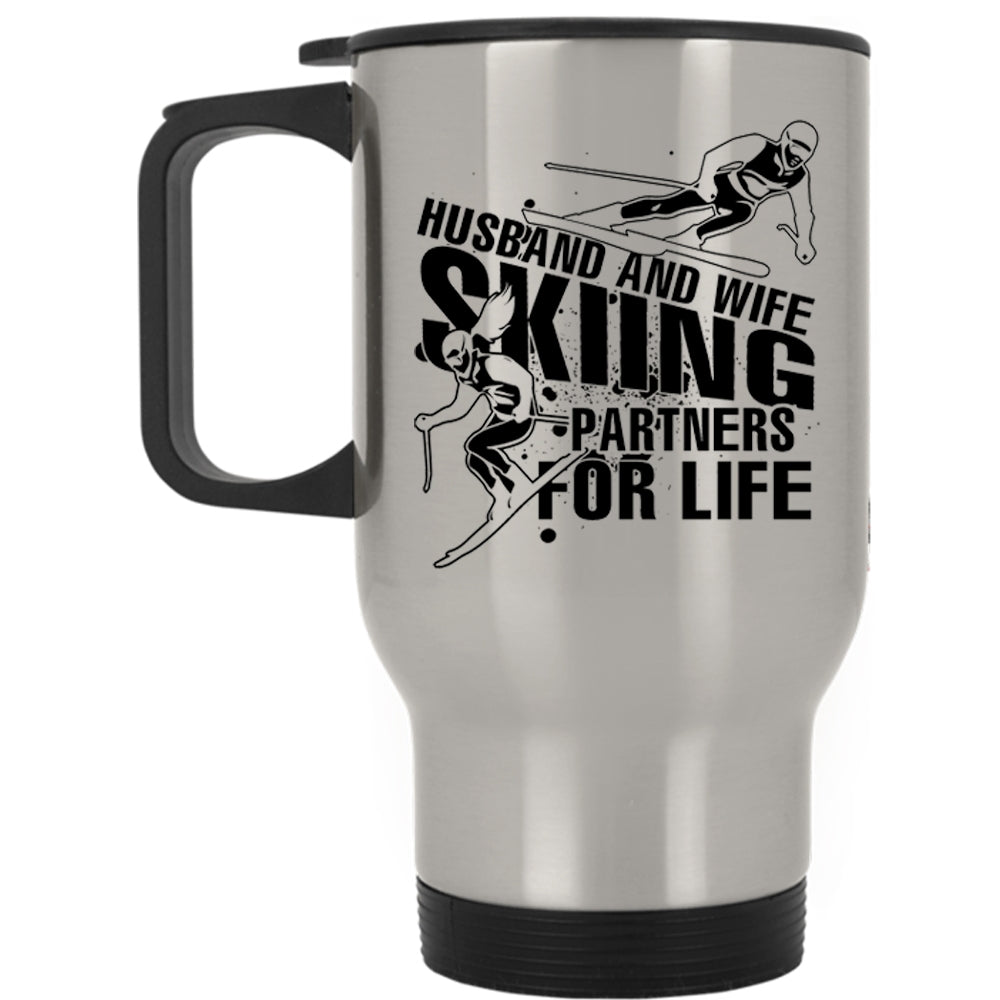 Skiing Partners For Life Travel Mug, Husband And Wife Mug