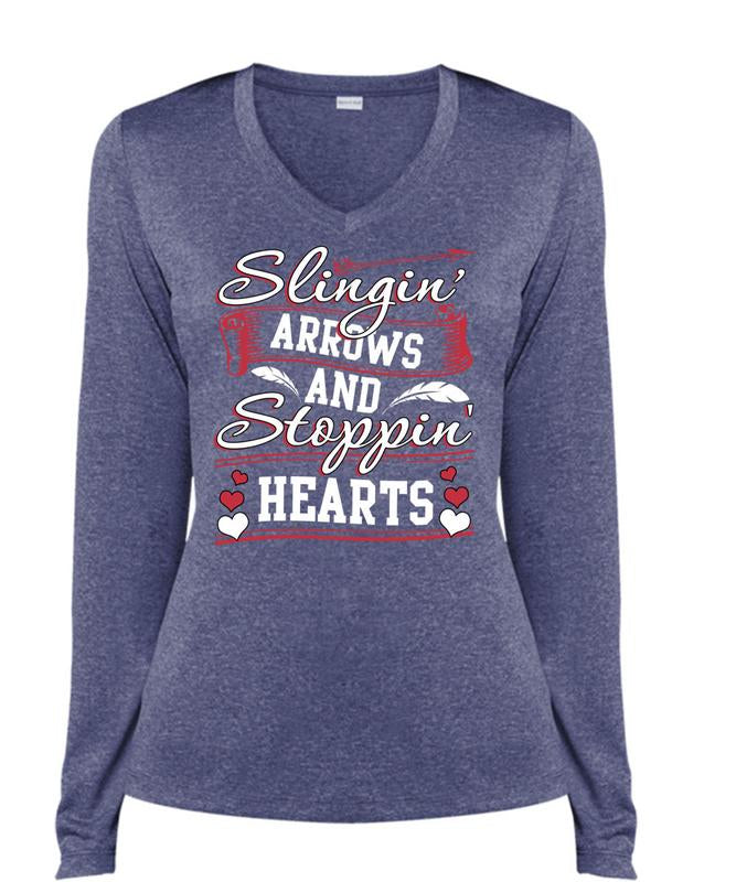 Slinging Arrows And Stopping Hearts T Shirt, Being A Wife T Shirt, Cool Shirt (Ladies LS Heather V-Neck)