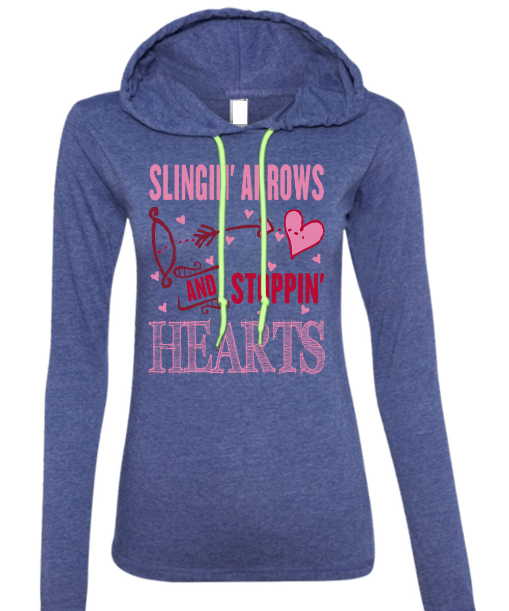 Slinging Arrows And Stopping Hearts T Shirt, I Love Husband T Shirt (Anvil Ladies Ringspun Hooded)