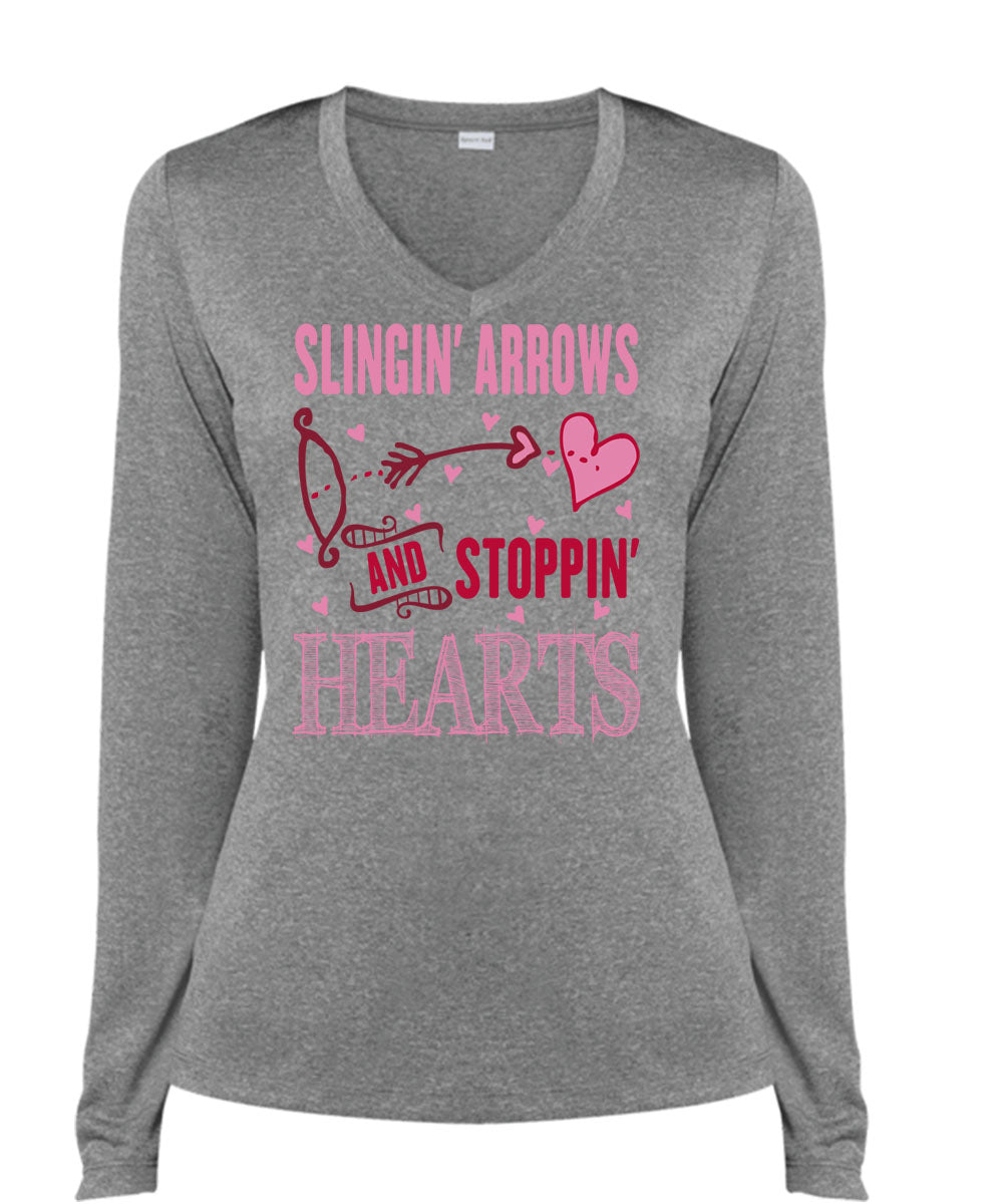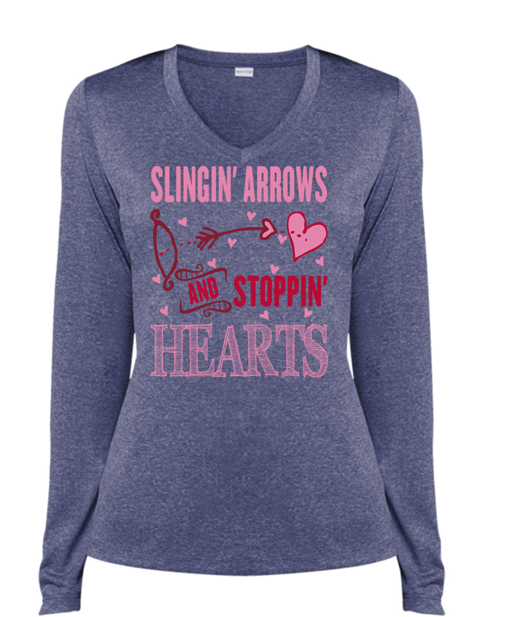 Slinging Arrows And Stopping Hearts T Shirt, I Love Husband T Shirt, Cool Shirt (Ladies LS Heather V-Neck)