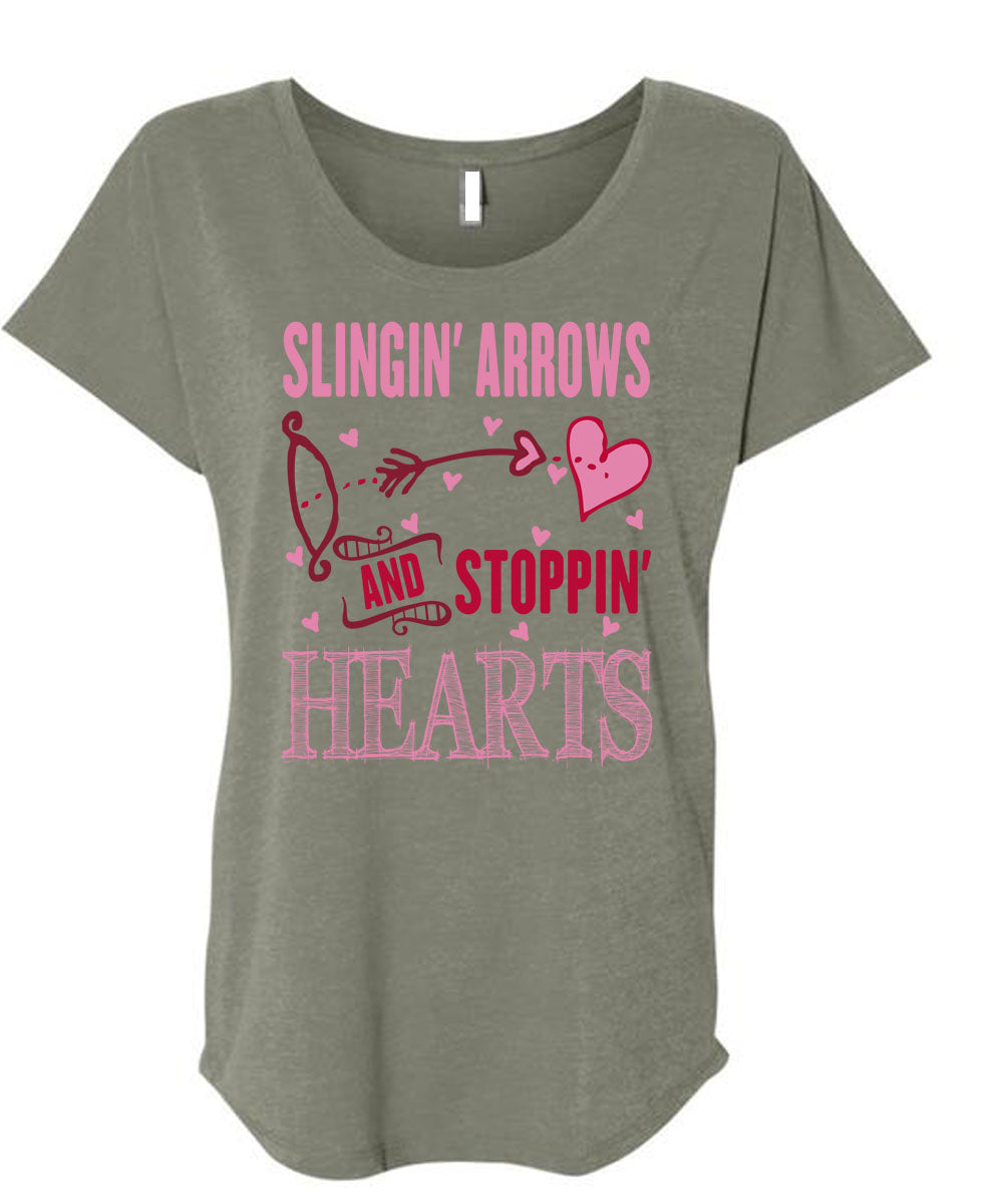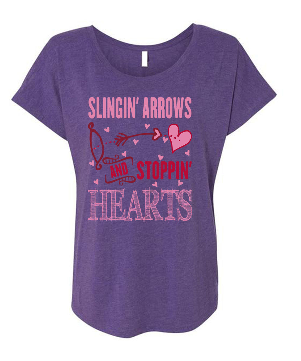 Slinging Arrows And Stopping Hearts T Shirt, I Love Husband T Shirt, Cool Shirt (Ladies' Triblend Dolman Sleeve)