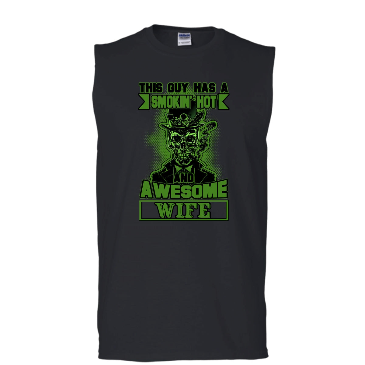 Smoking Hot And Awesome Wife T Shirt, Funny Husband Tank Top (Men's Cotton Sleeveless)