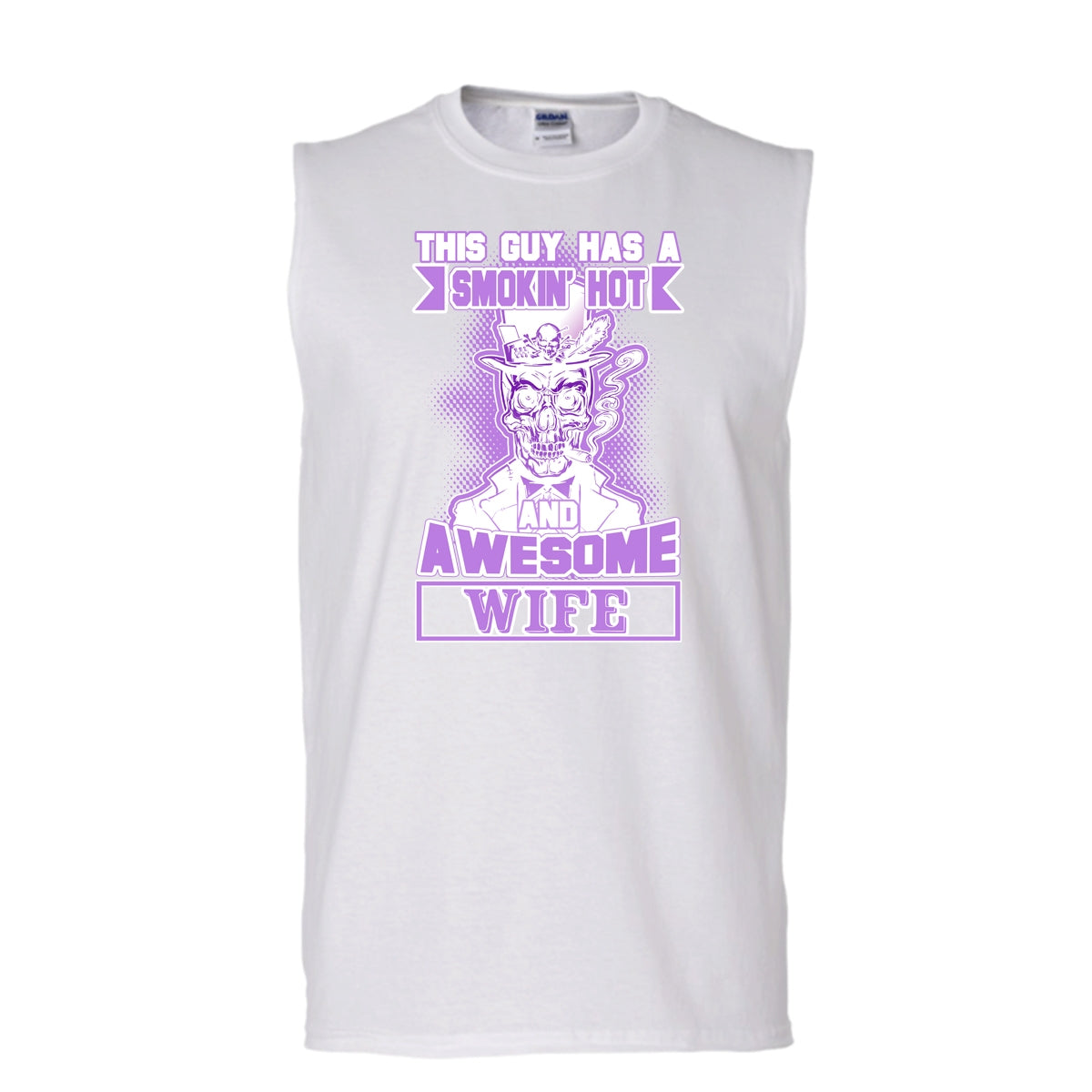 Smoking Hot And Awesome Wife T Shirt, Gift For Husband Tank Top (Men's Cotton Sleeveless)