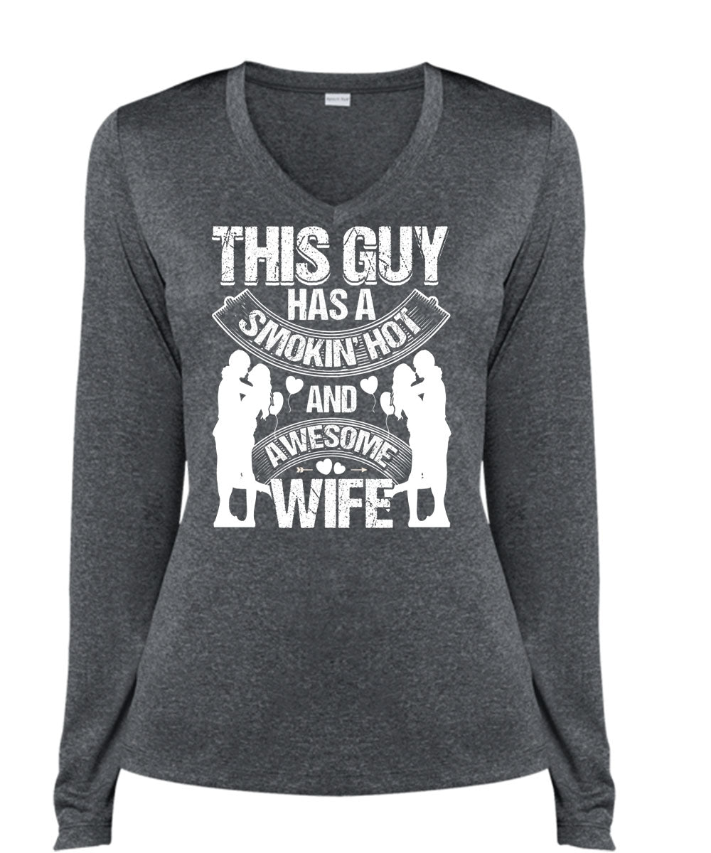Smoking Hot And Awesome Wife T Shirt, My Family WarmBeing A Husband T Shirt, Cool Shirt (Ladies LS Heather V-Neck)