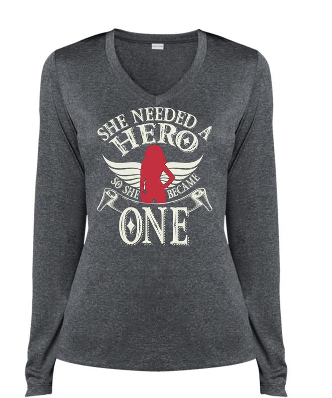 So She Became One T Shirt, Being A Wife T Shirt, Cool Shirt (Ladies LS Heather V-Neck)
