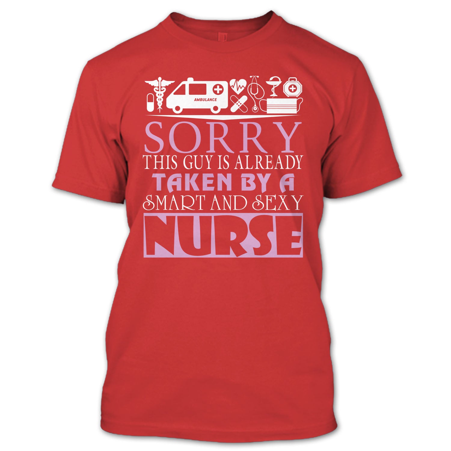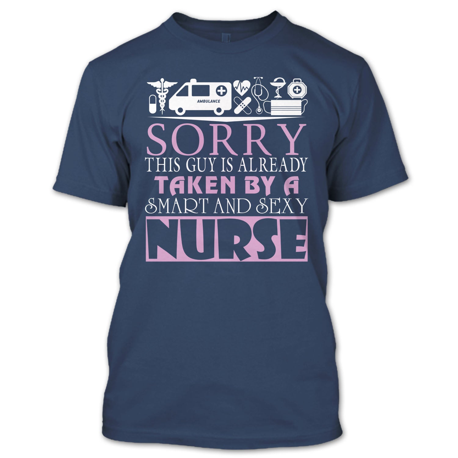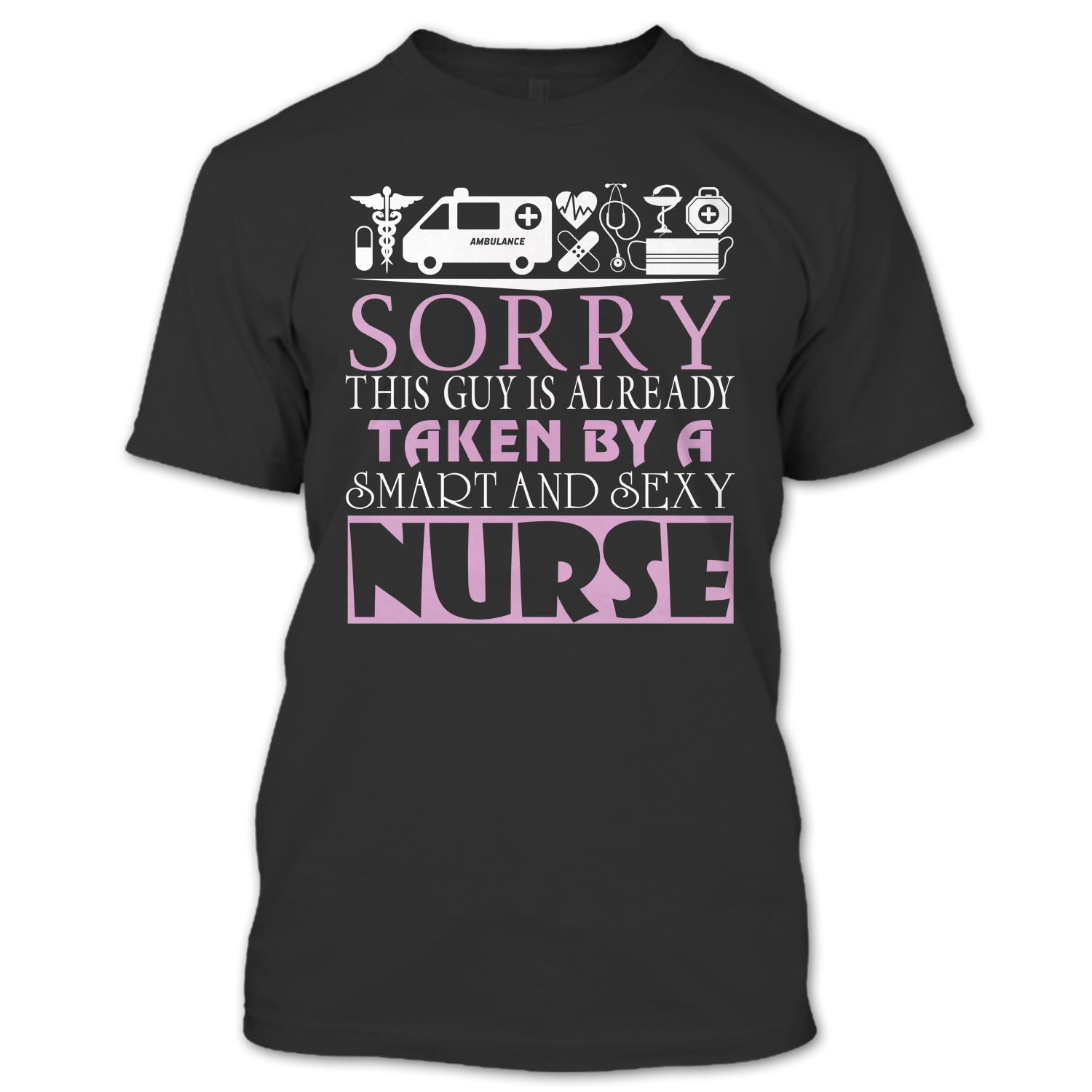 Sorry This Guy Is Already Taken By A Smart & Sexy Nurse T Shirt, I'm A Nurse Husband T Shirt