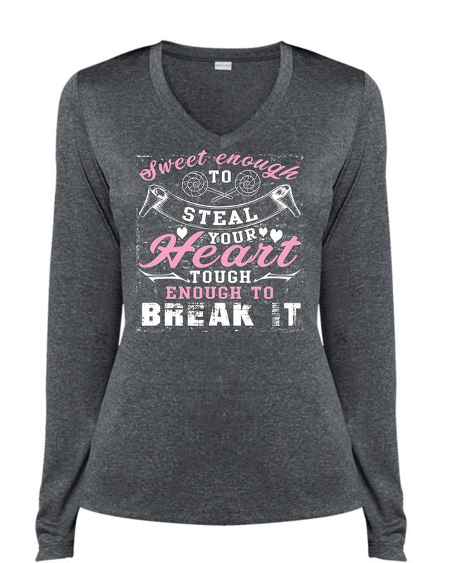 Sweet Enough To Steal Your Heart T Shirt, Being A Wife T Shirt, Cool Shirt (Ladies LS Heather V-Neck)