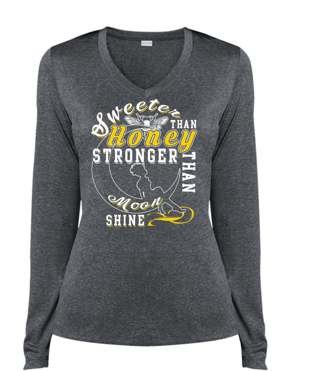 Sweeter Than Honey Stronger Than Moonshine T Shirt, I Love Husband T Shirt, Cool Shirt (Ladies LS Heather V-Neck)
