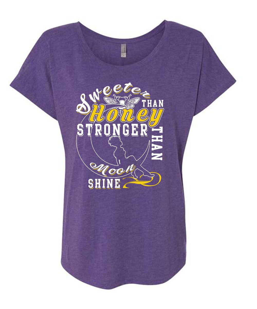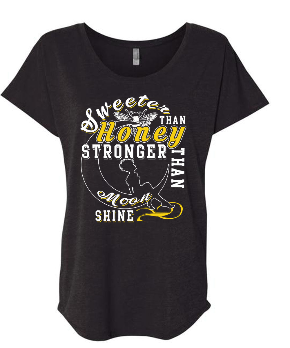 Sweeter Than Honey Stronger Than Moonshine T Shirt, I Love Husband T Shirt, Cool Shirt (Ladies' Triblend Dolman Sleeve)