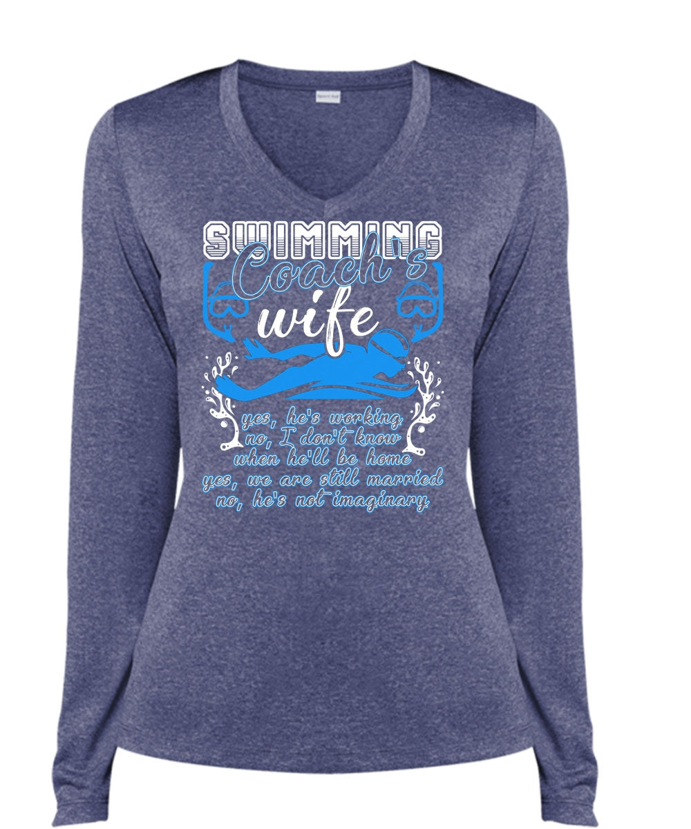 Swimming Coach's Wife T Shirt, We Are Still Married T Shirt, Cool Shirt (Ladies LS Heather V-Neck)