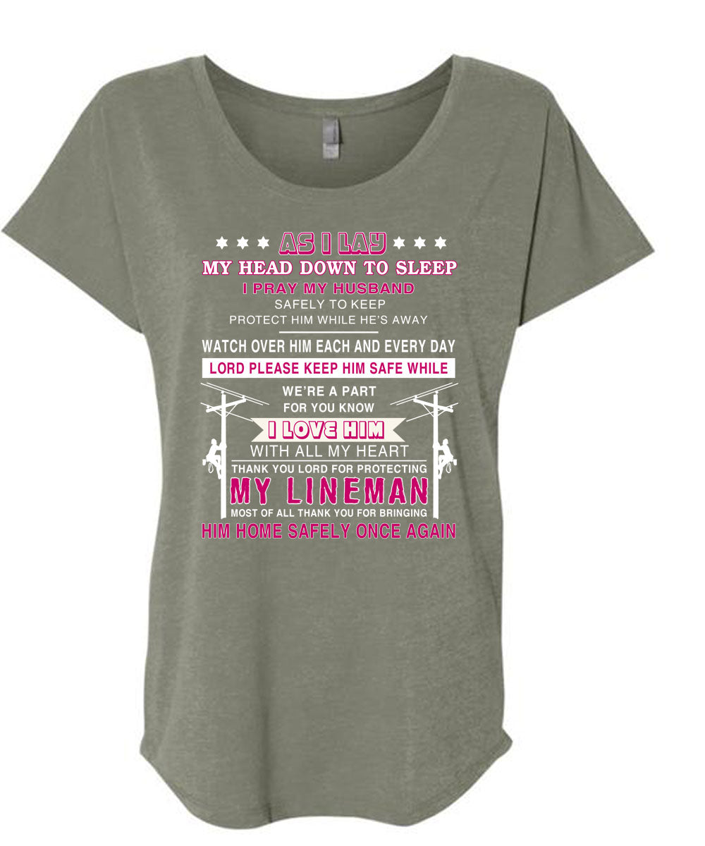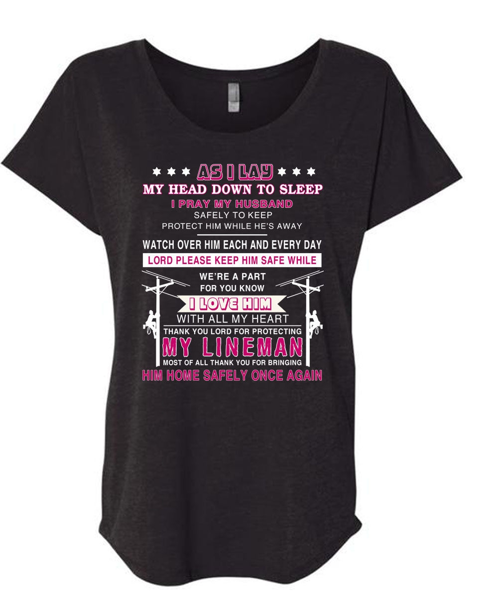 Thank You Lord For Protecting My Lineman T Shirt, I Pray My Husband Safely To Keep T Shirt, Cool Shirt (Ladies' Triblend Dolman Sleeve)