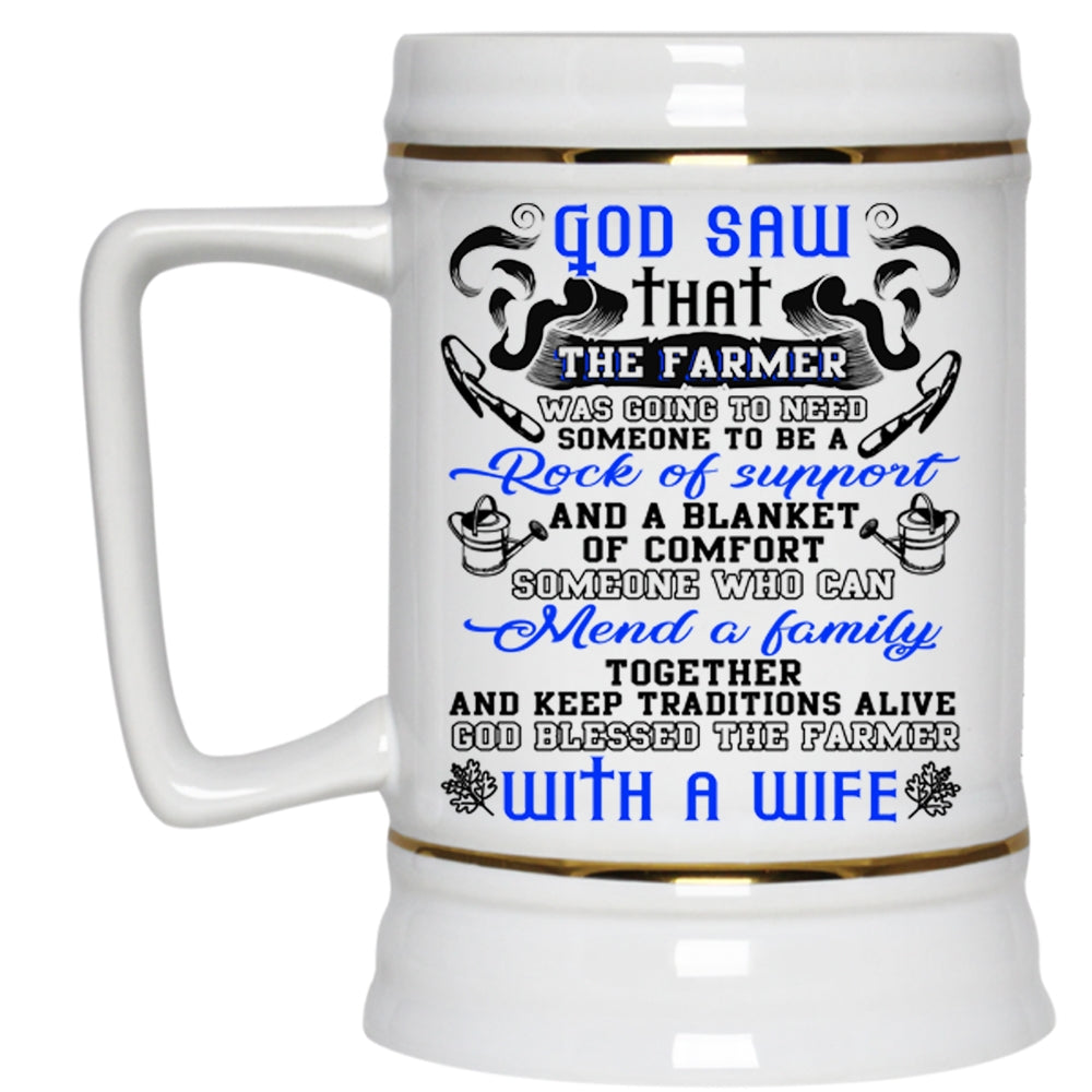 The Farmer With A Wife Beer Stein 22oz, Farmer Beer Mug