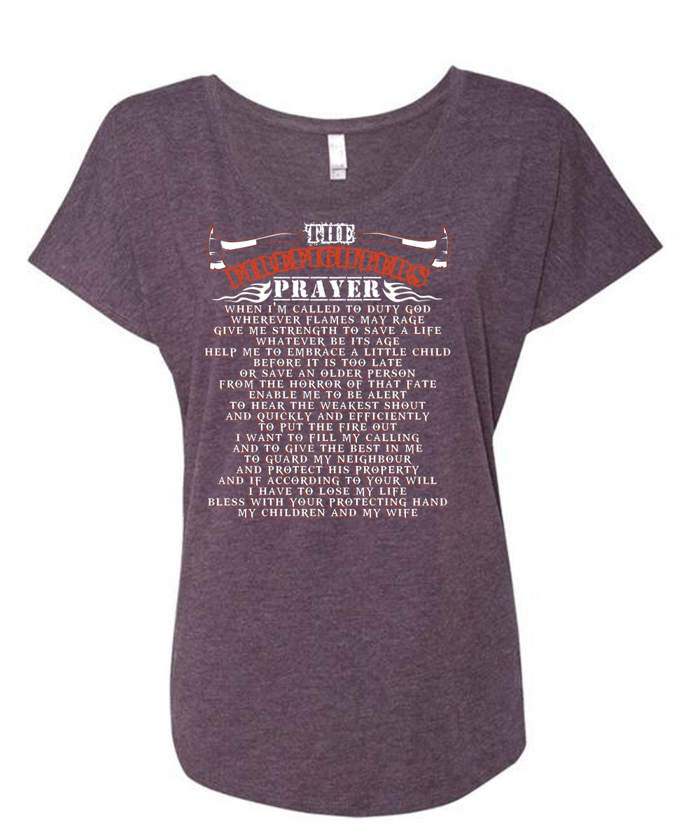The Firefighters Prayer T Shirt, My Children And My Wife T Shirt, Cool Shirt (Ladies' Triblend Dolman Sleeve)