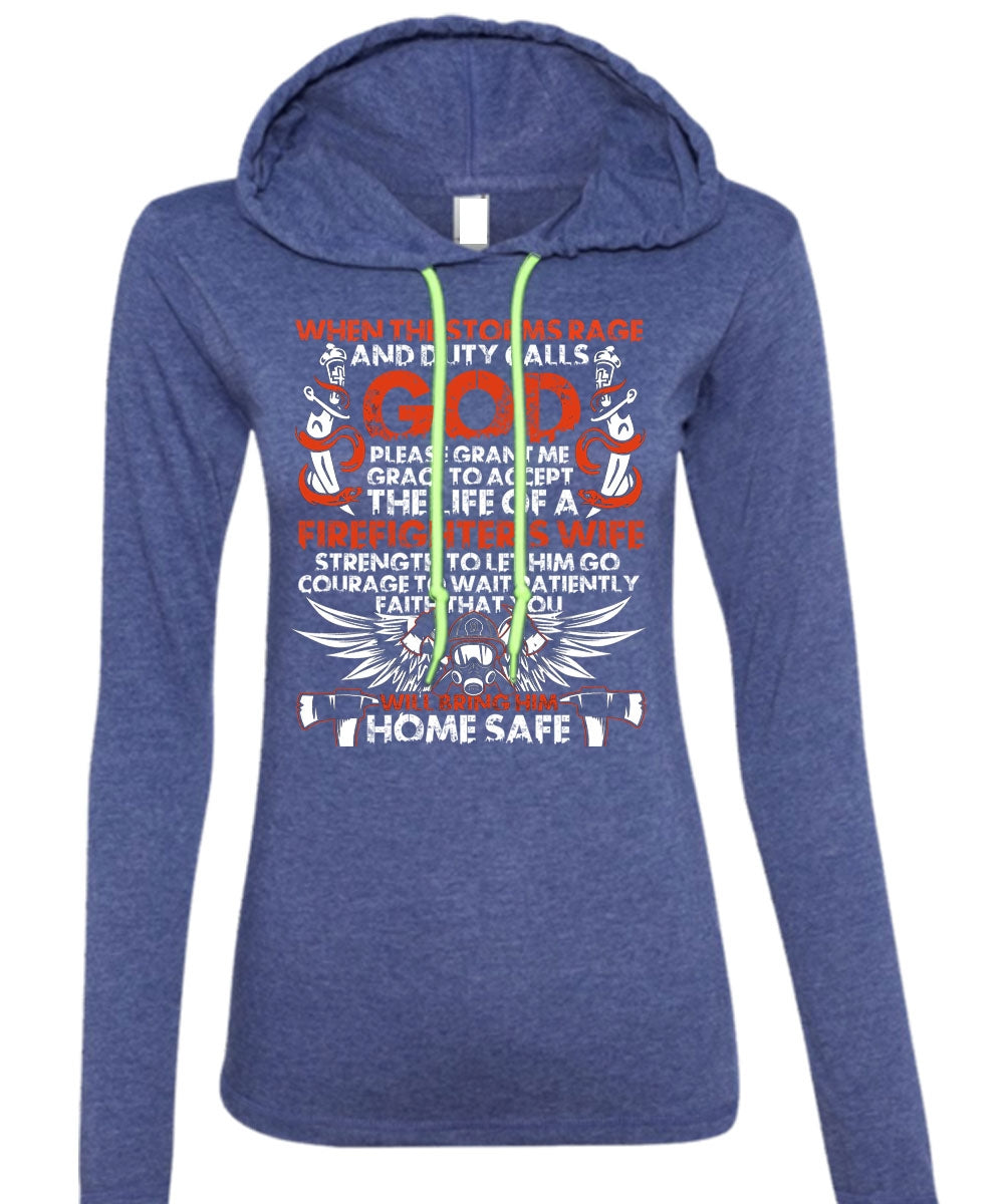 The Life Of A Firefighter's Wife T Shirt, Home Safe T Shirt (Anvil Ladies Ringspun Hooded)