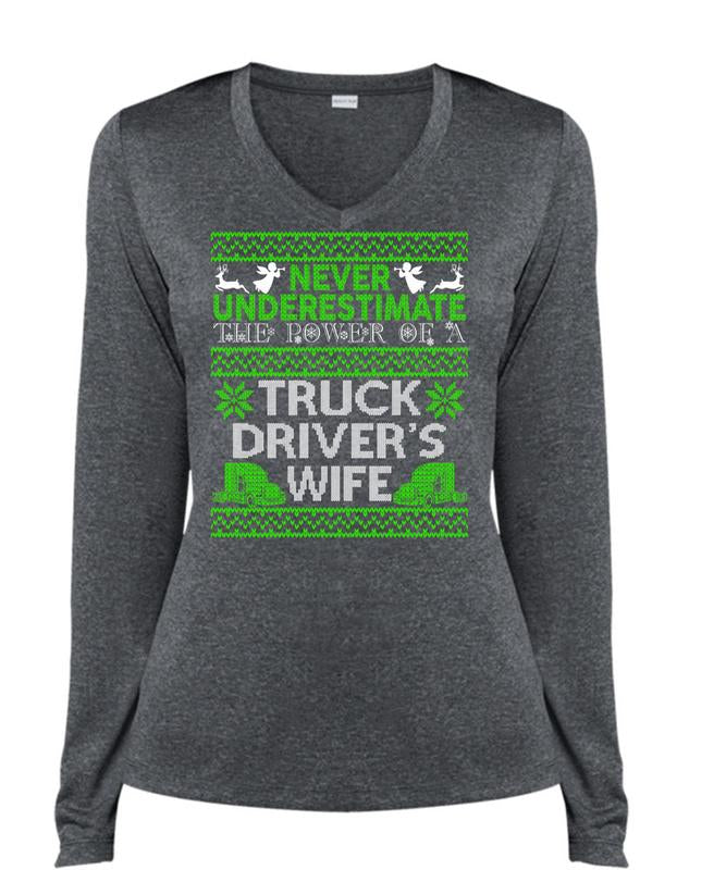 The Power Of A Truck Driver's Wife T Shirt, Being A Trucker T Shirt, Cool Shirt (Ladies LS Heather V-Neck)