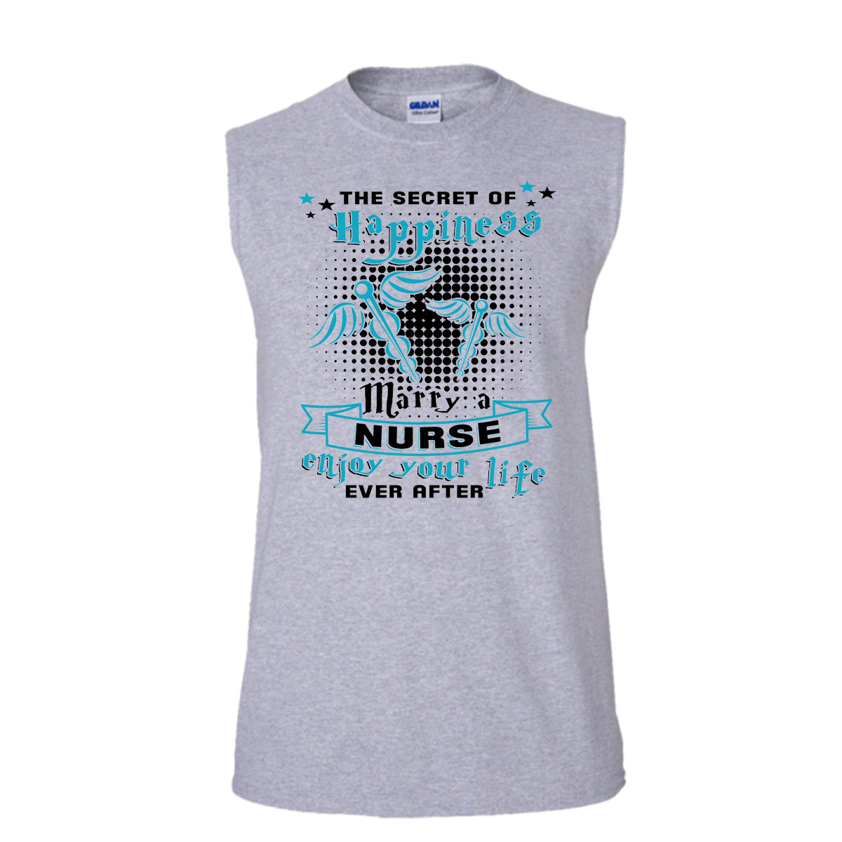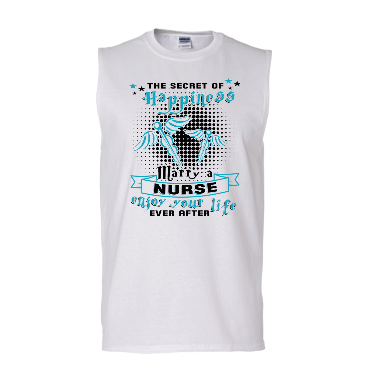 The Secret Of Happiness T Shirt, Coolest Nurse's Husband T Shirt, Awesome t-shirts (Men's Cotton Sleeveless)