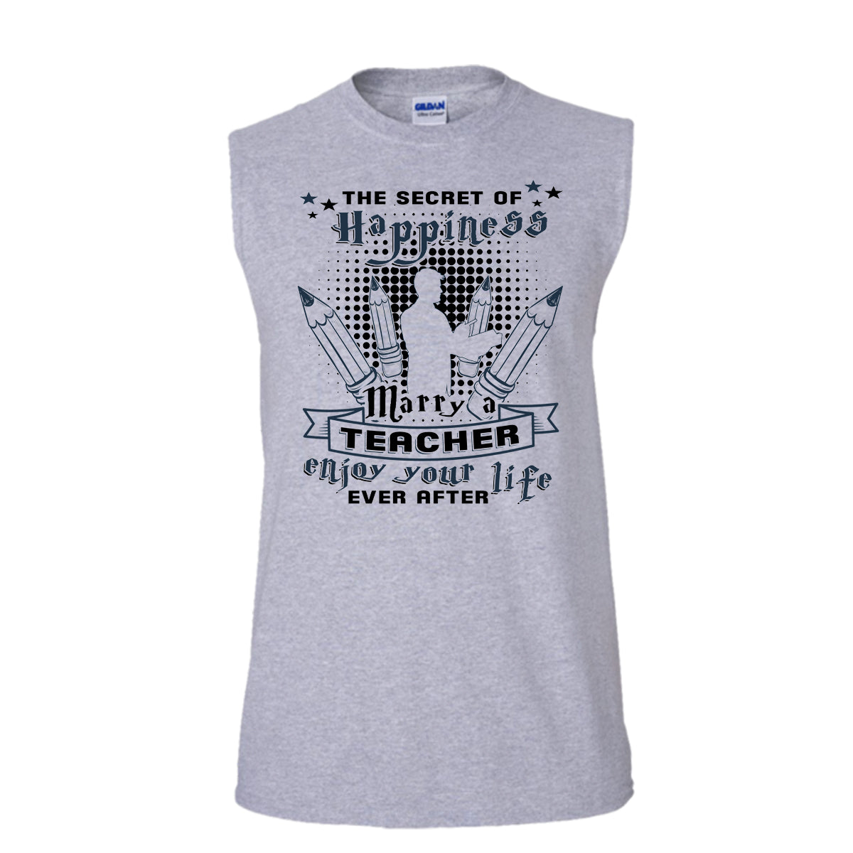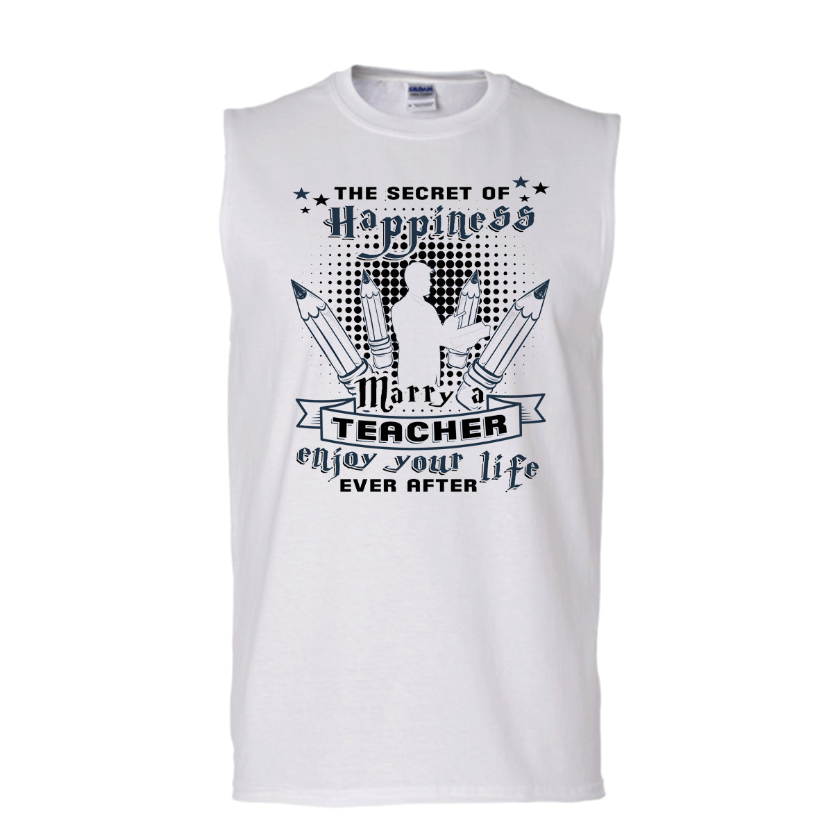 The Secret Of Happiness T Shirt, Coolest Teacher Husband T Shirt, Awesome t-shirts (Men's Cotton Sleeveless)
