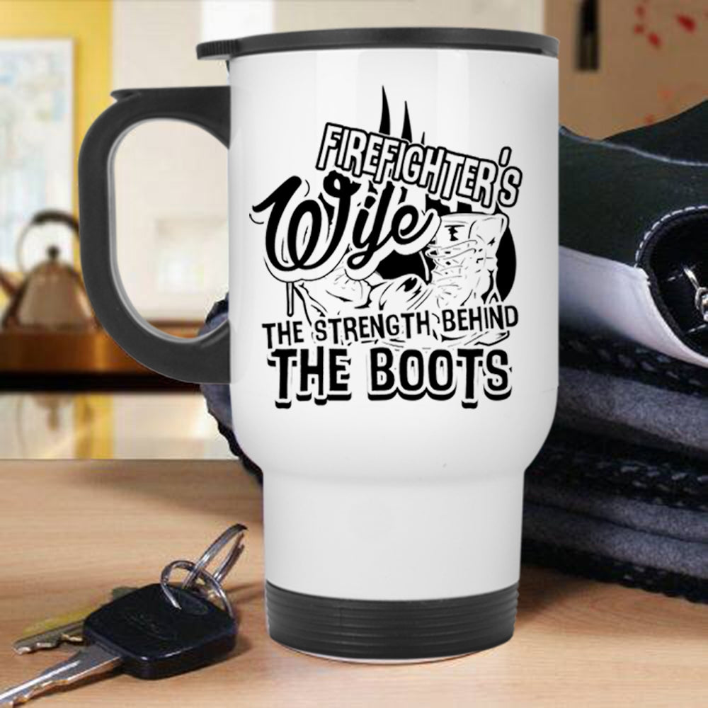 The Strength Behind The Boots Travel Mug, Firefighter's Wife Mug