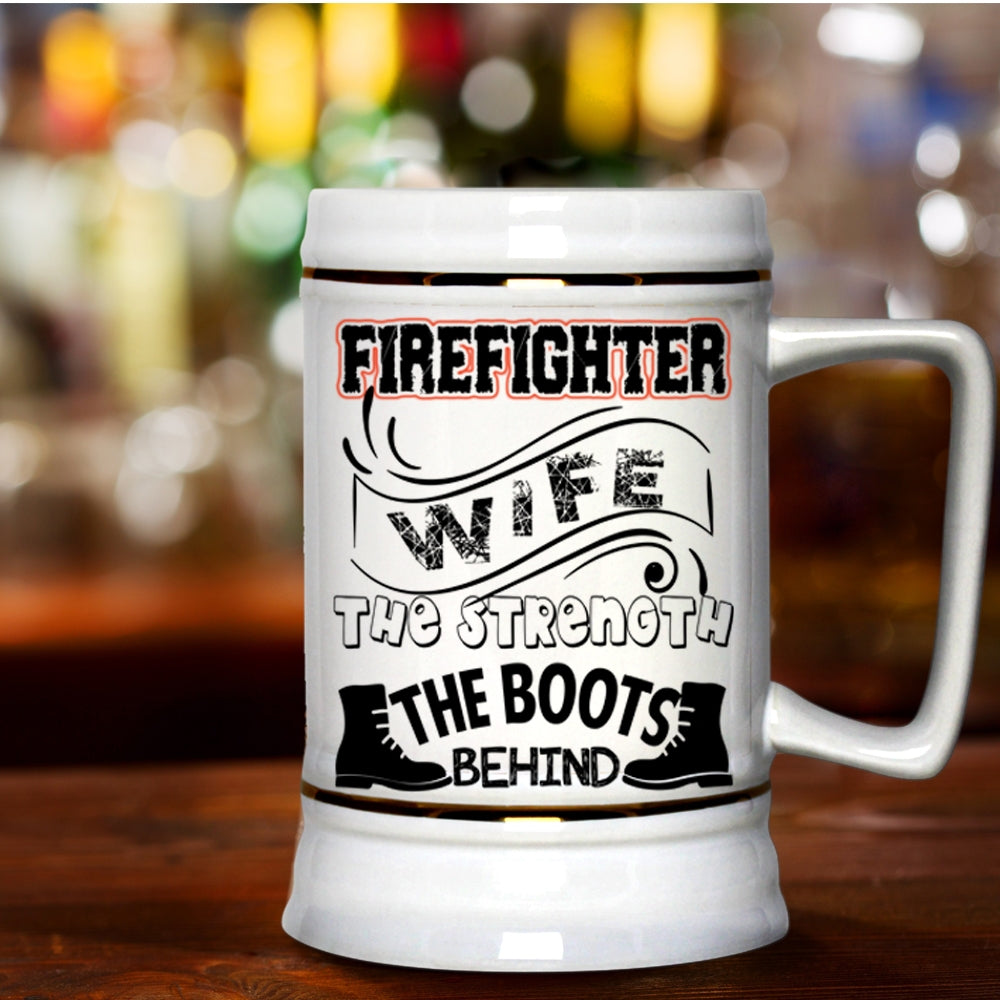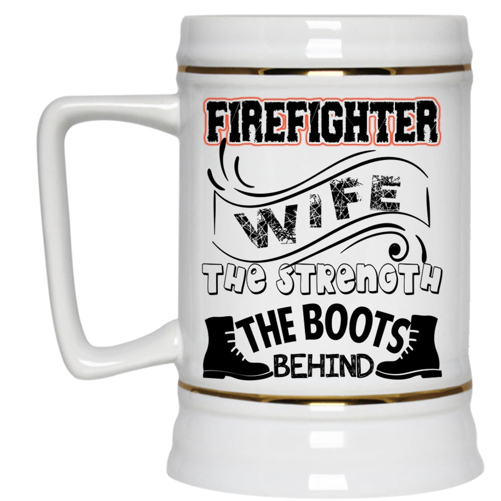 The Strength The Boots Behind Beer Stein 22oz, Firefighter Wife Beer Mug