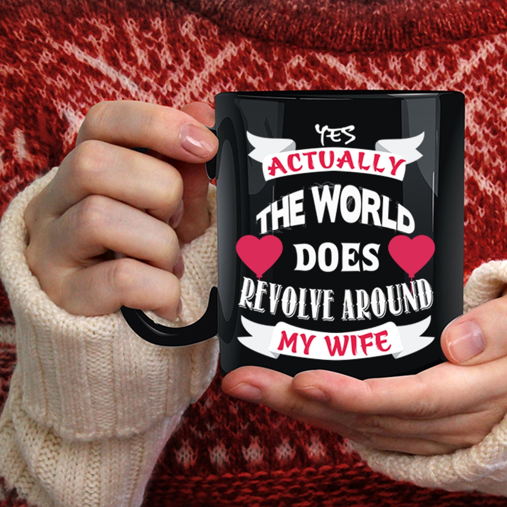 The World Does Revolve Around My Wife Coffee Mug, Married Coffee Cup