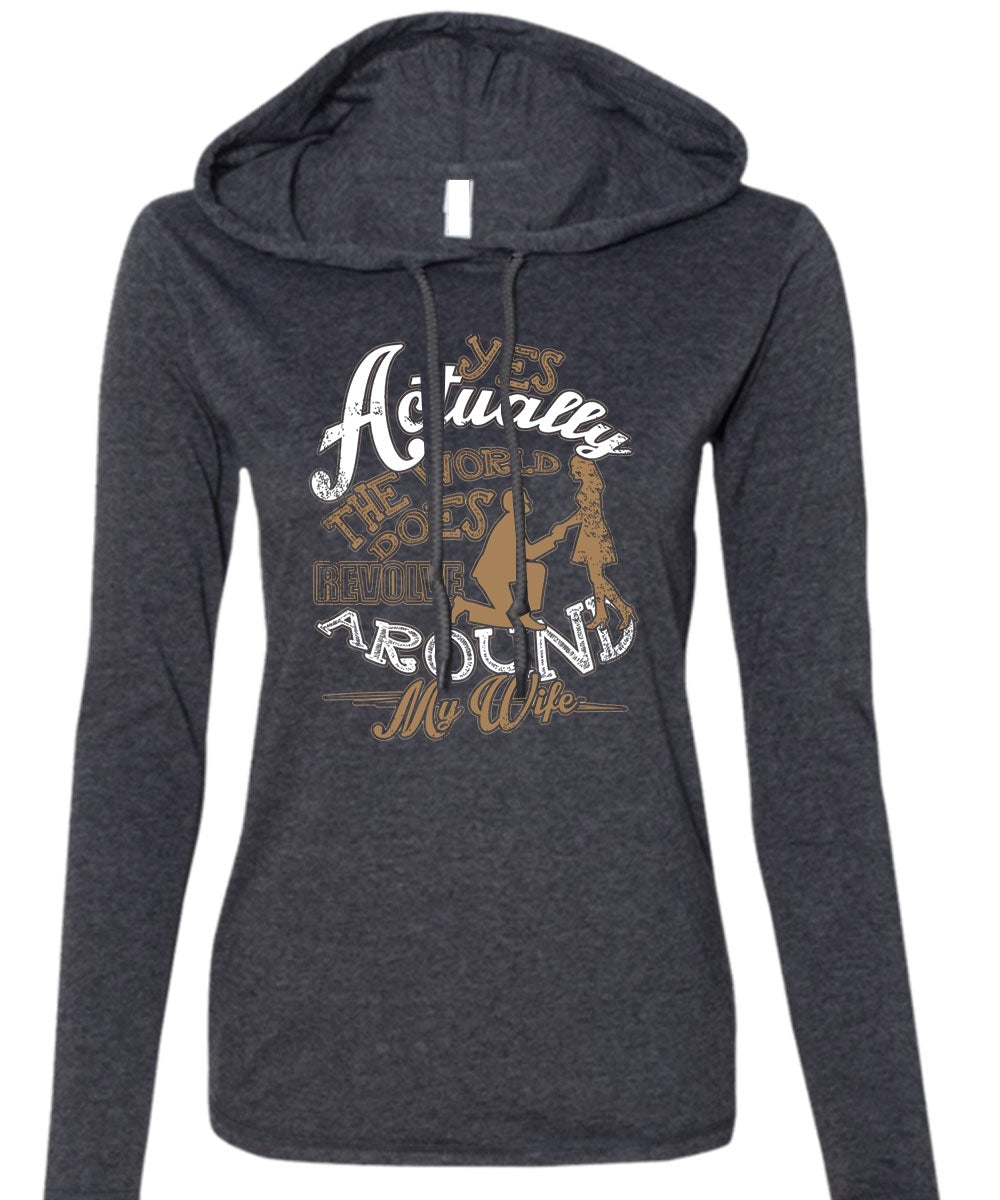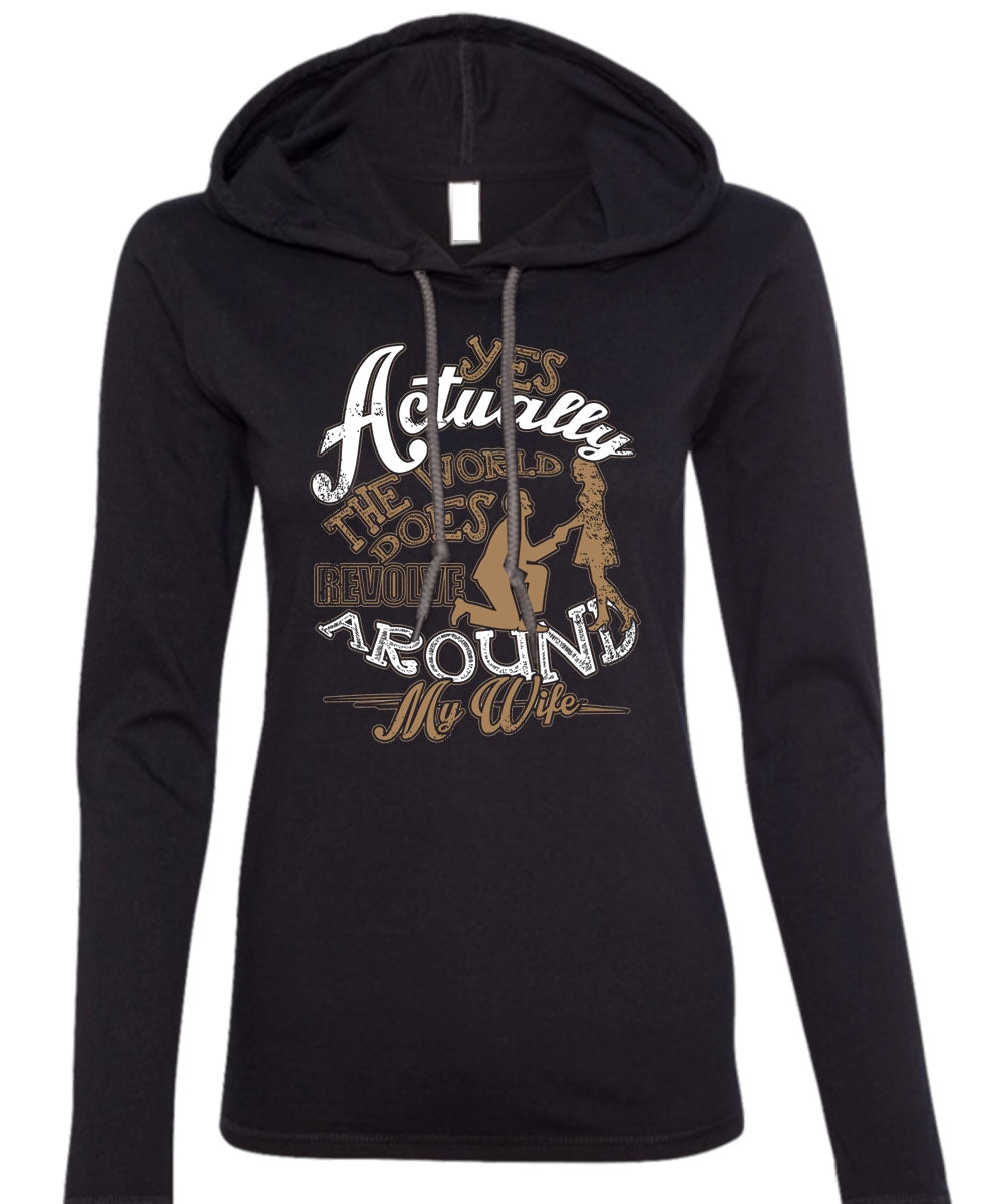 The World Does Revolve Around My Wife T Shirt, Being A Wife T Shirt (Anvil Ladies Ringspun Hooded)