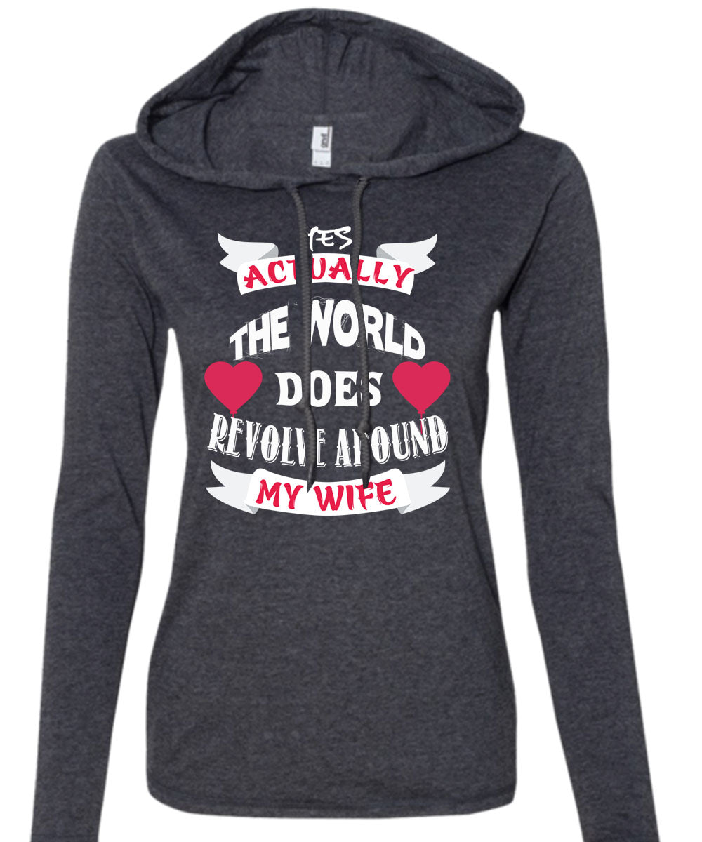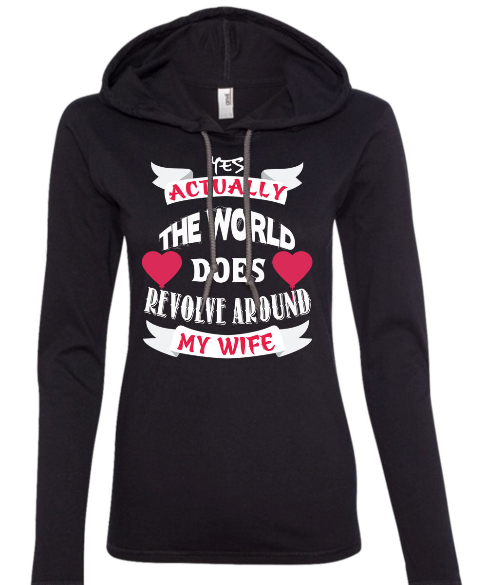 The World Does Revolve Around My Wife T Shirt, I Love Husband T Shirt (Anvil Ladies Ringspun Hooded)