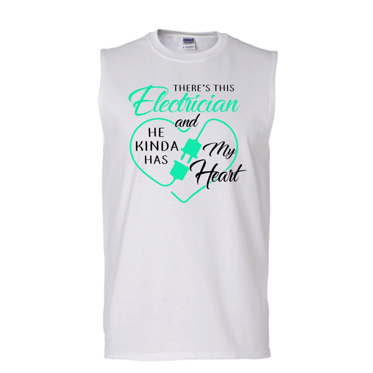 There's This Electrician And He Kida Has My Heart Shirt, Electrician Husband Shirt (Men's Cotton Sleeveless)