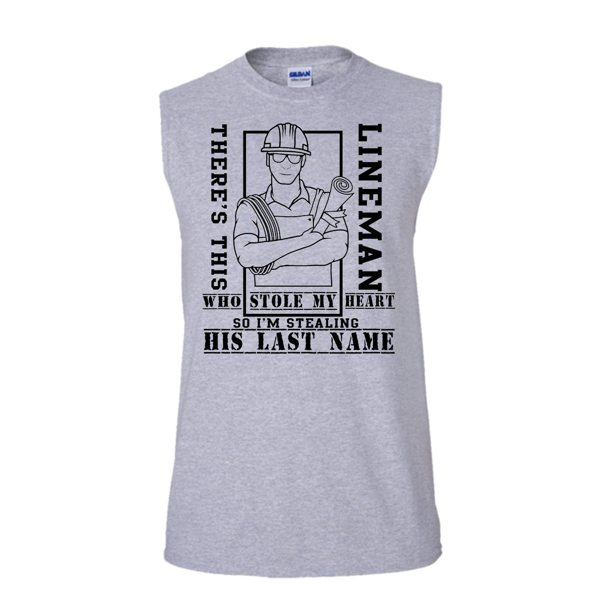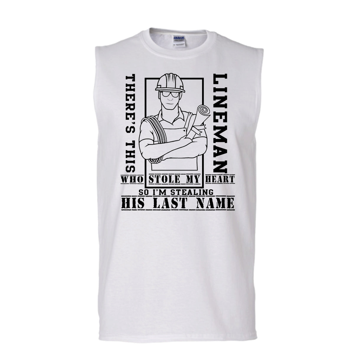 There's This Lineman T Shirt, Coolest Lineman's Wife T Shirt, Awesome t-shirts (Men's Cotton Sleeveless)