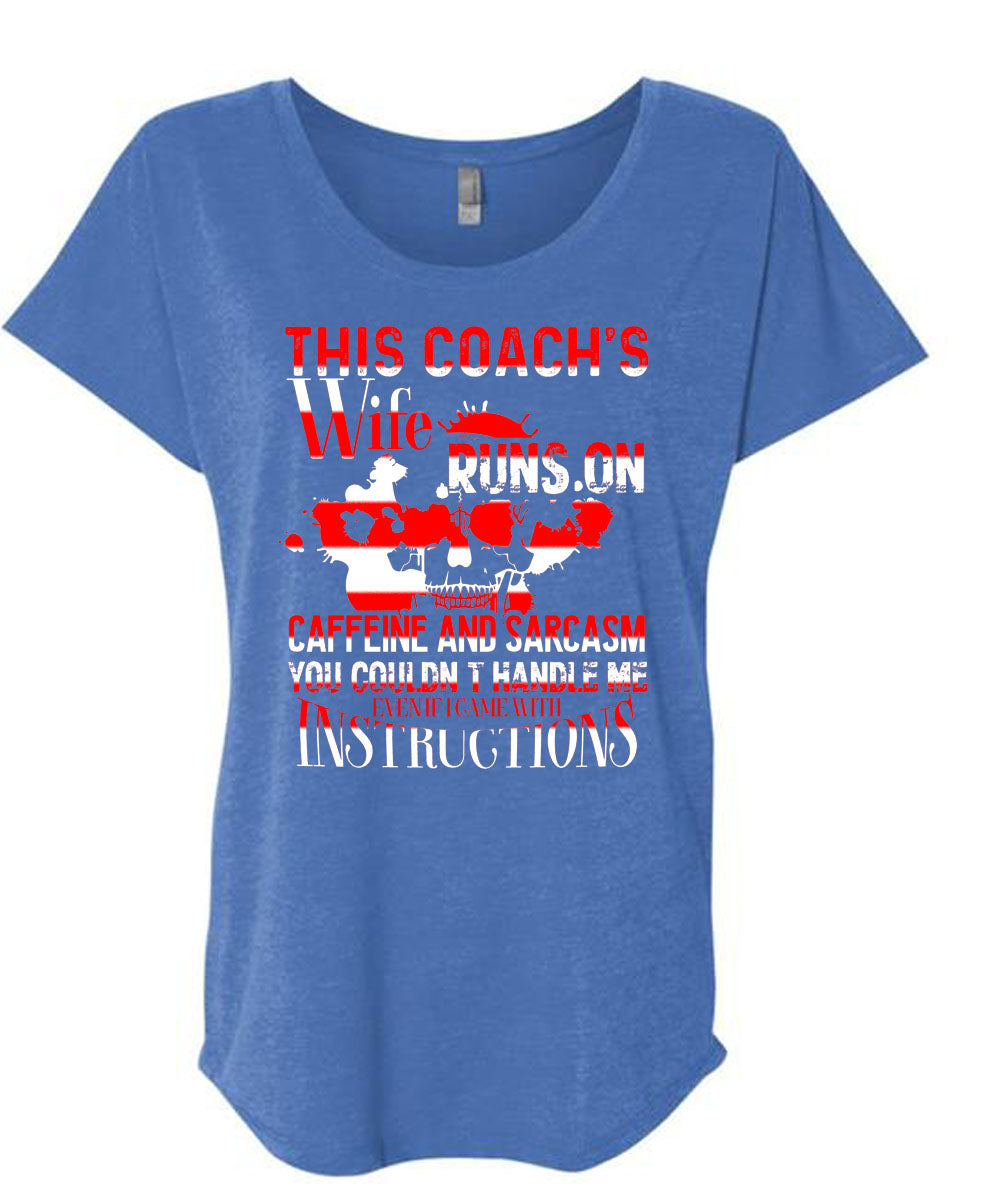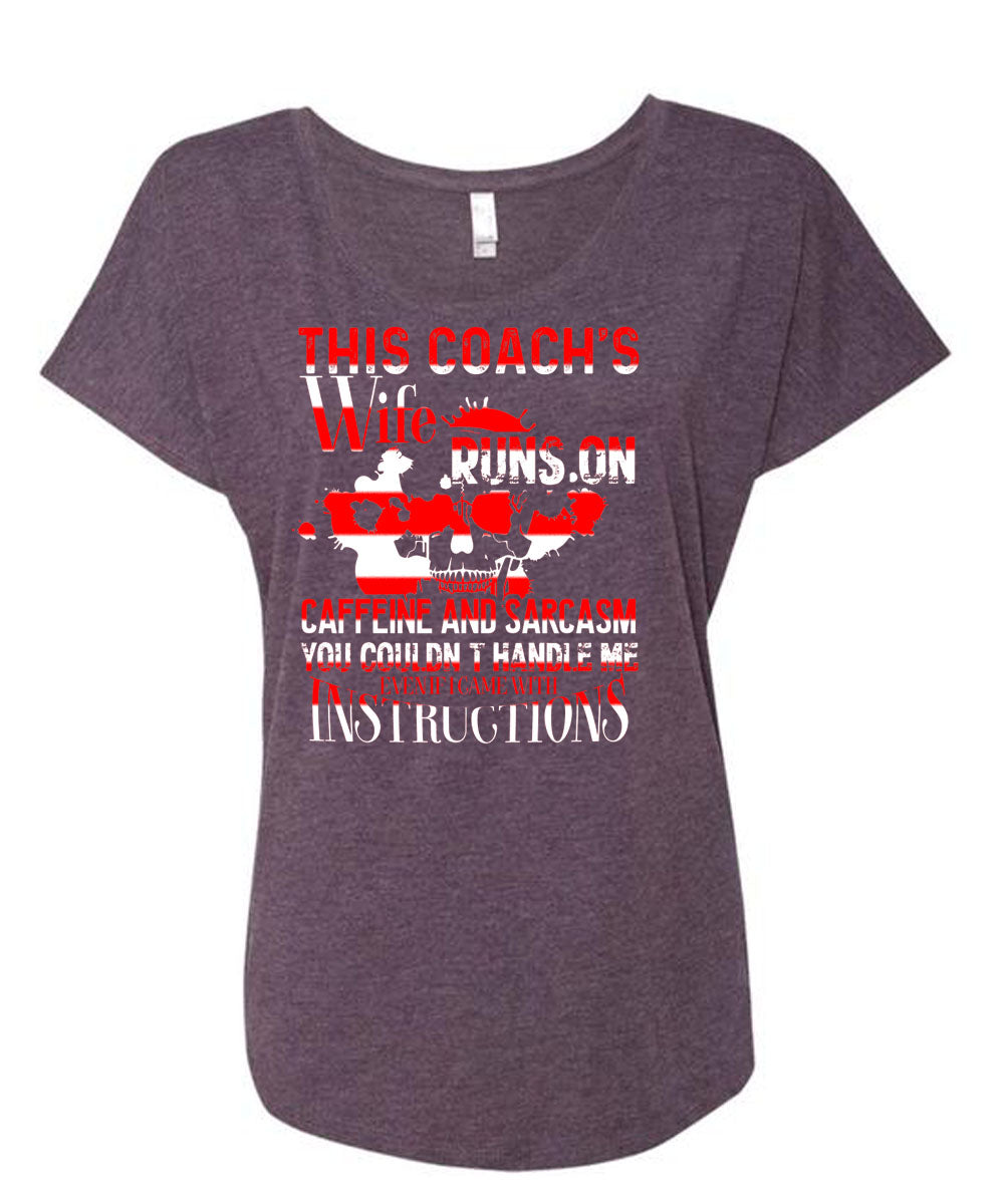 This Coach's Wife Runs On Caffeine T Shirt, You Couldn't Handle Me T Shirt, Cool Shirt (Ladies' Triblend Dolman Sleeve)