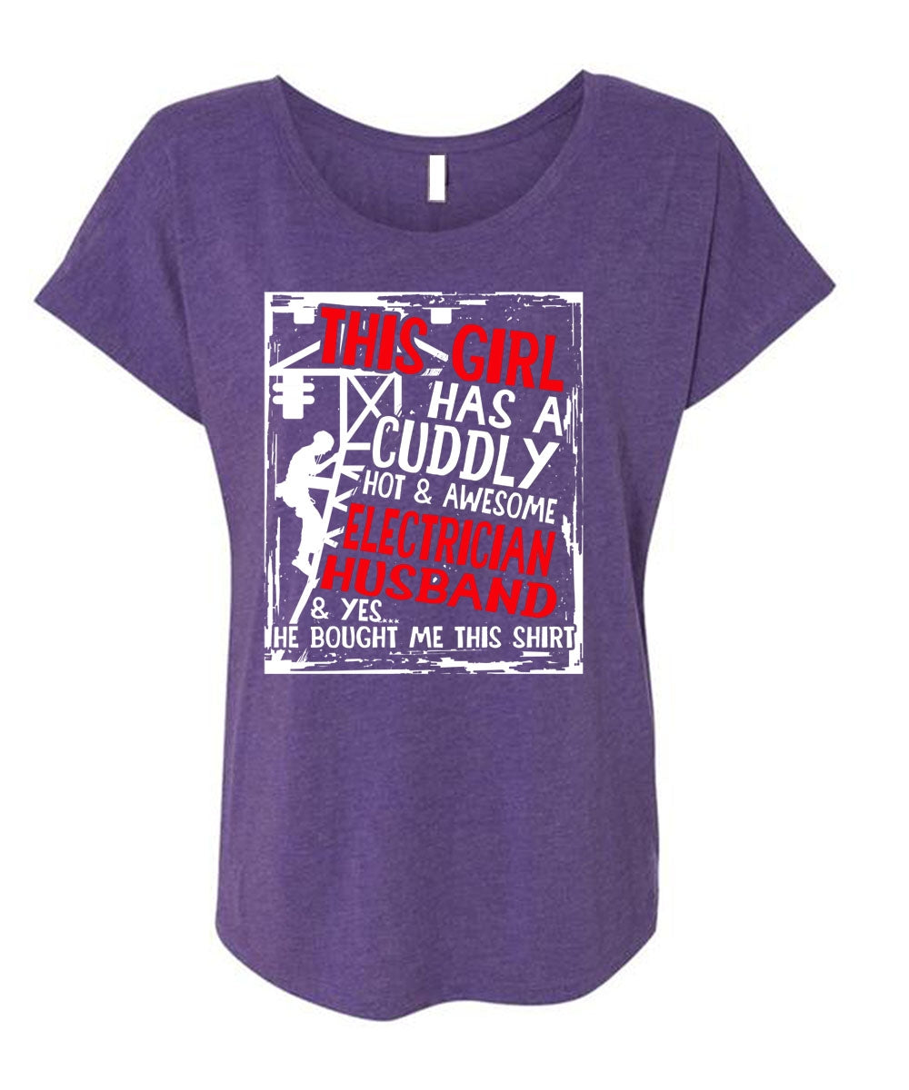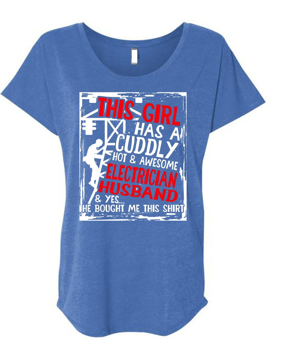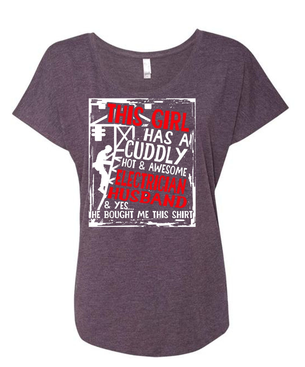 This Girl Has A Cuddly Electrician Husband T Shirt, Being An Electrician T Shirt, Cool Shirt (Ladies' Triblend Dolman Sleeve)