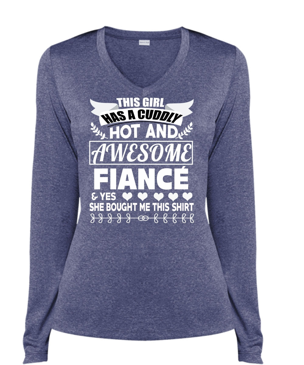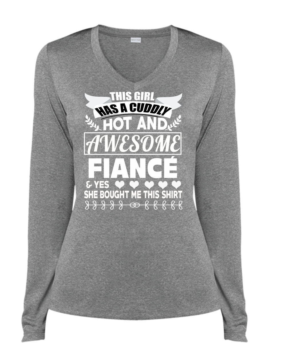 This Girl Has A Cuddly Hot Fiance T Shirt, Being A Husband T Shirt, Cool Shirt (Ladies LS Heather V-Neck)
