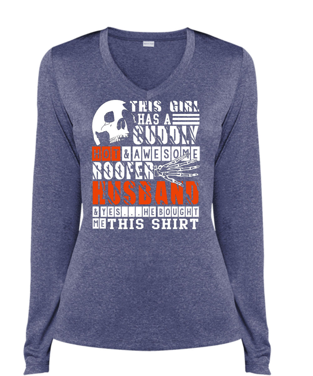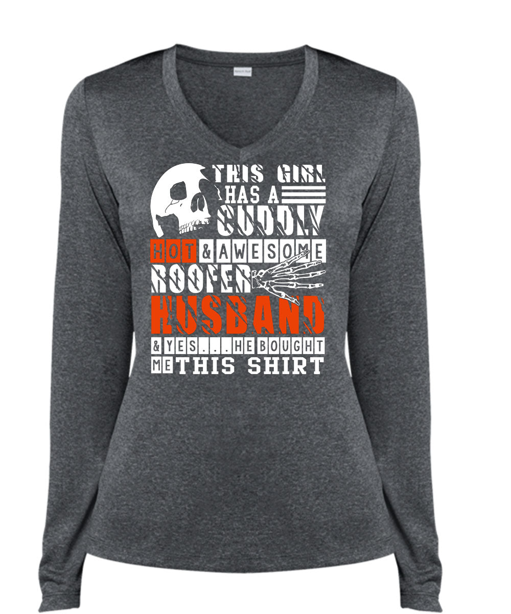 This Girl Has A Cuddly Hot Roofer Husband T Shirt, Being A Roofer T Shirt, Cool Shirt (Ladies LS Heather V-Neck)