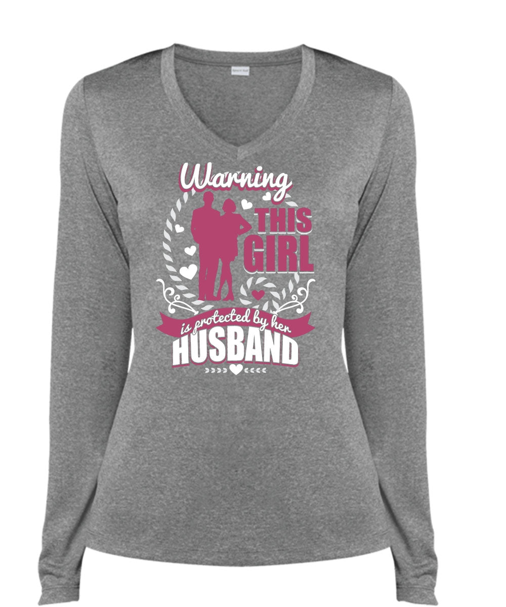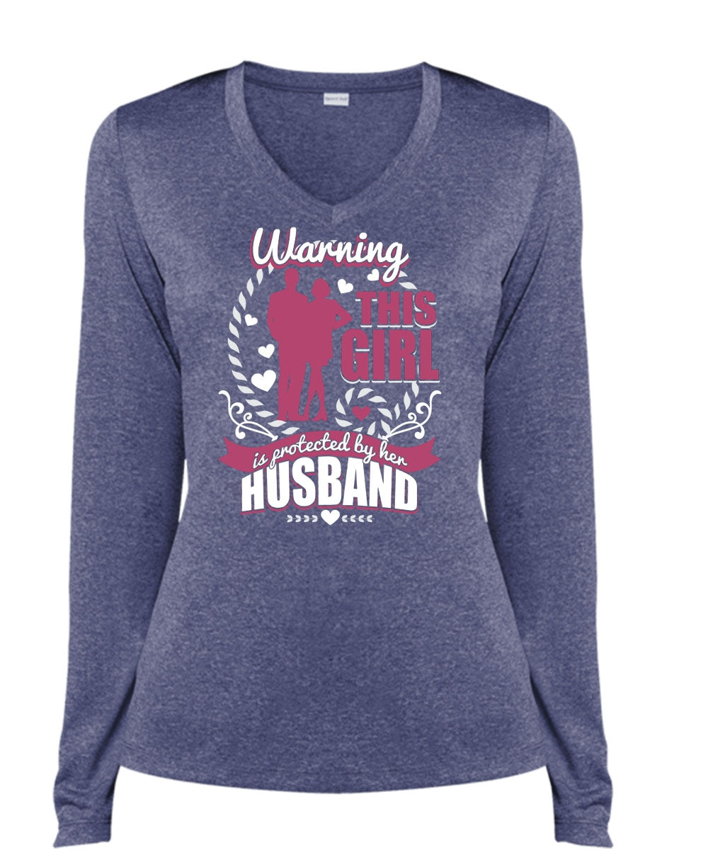 This Girl Is Protected By Her Husband T Shirt, Being A Husband T Shirt, Cool Shirt (Ladies LS Heather V-Neck)