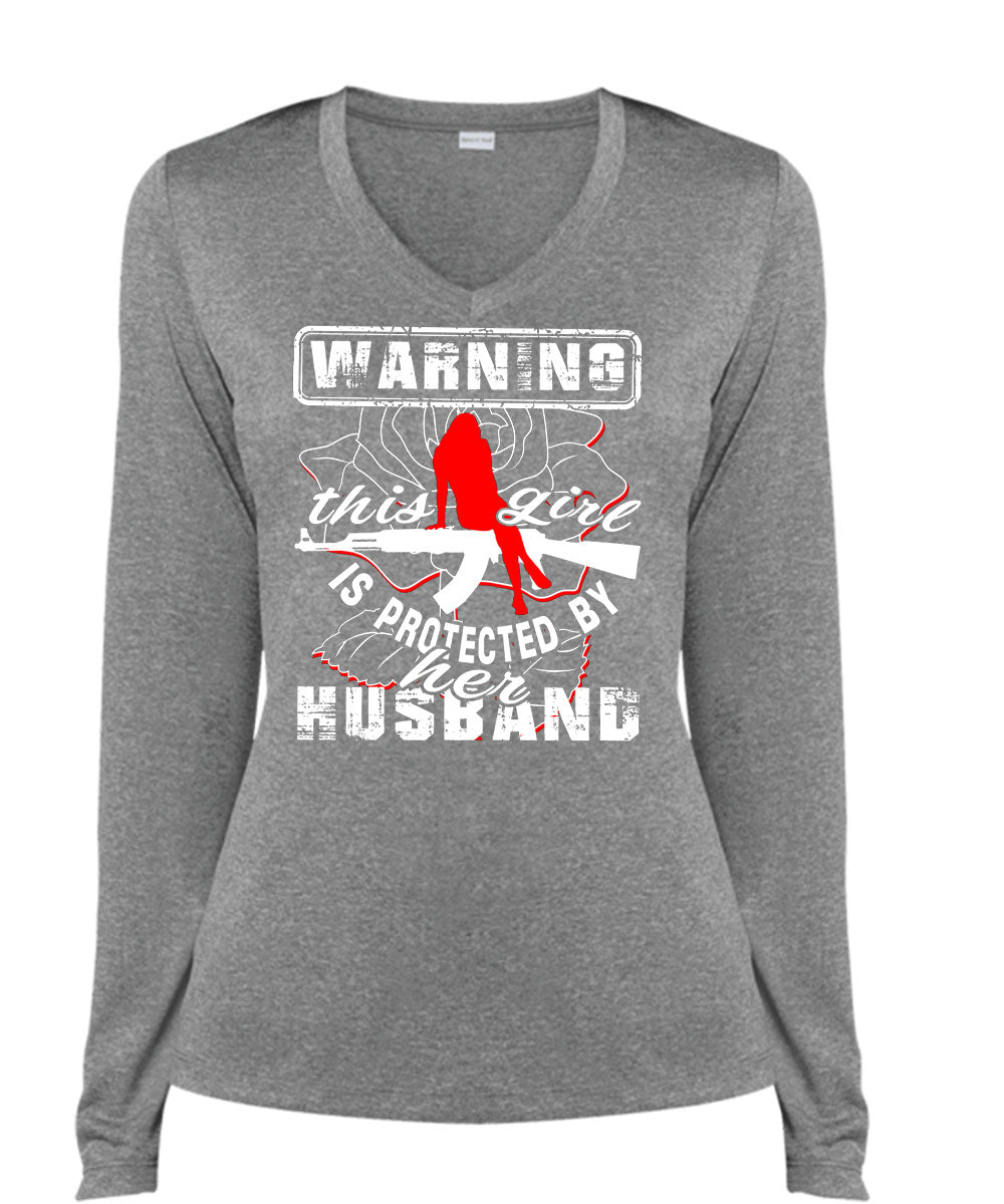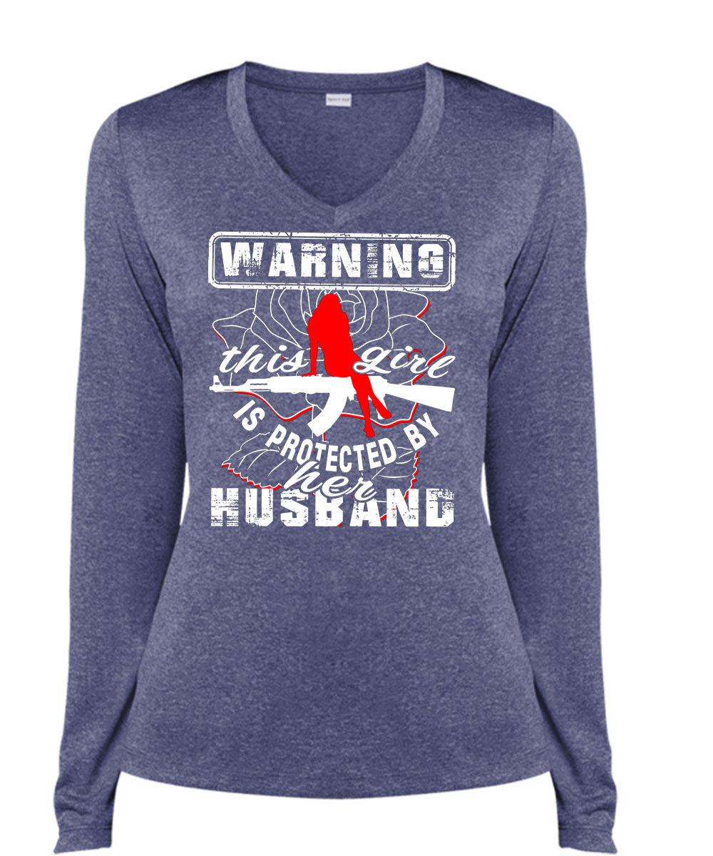 This Girl Is Protected By Her Husband T Shirt, Being A Wife T Shirt, Cool Shirt (Ladies LS Heather V-Neck)