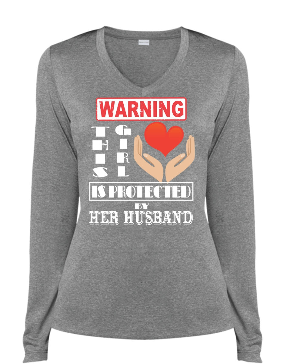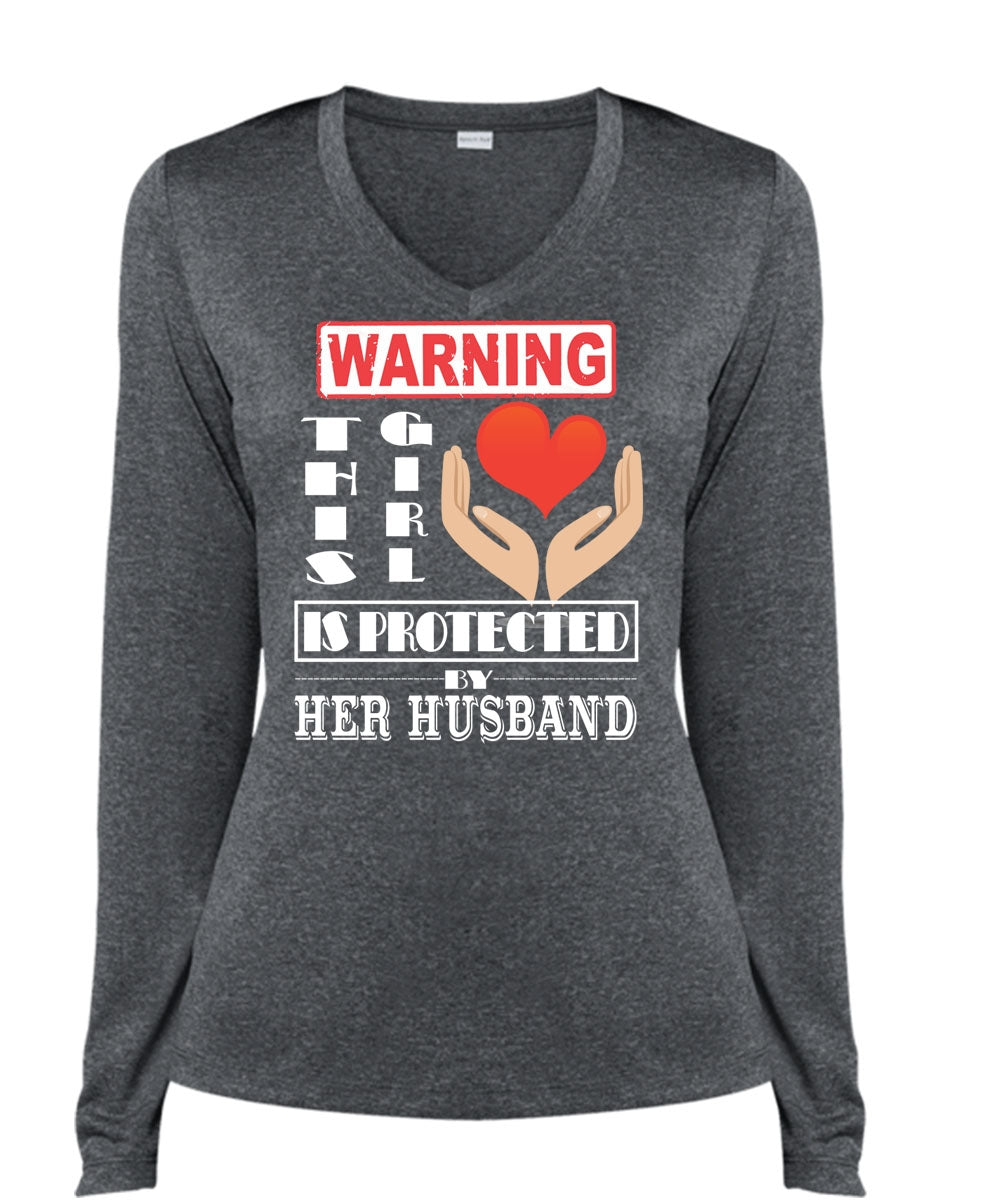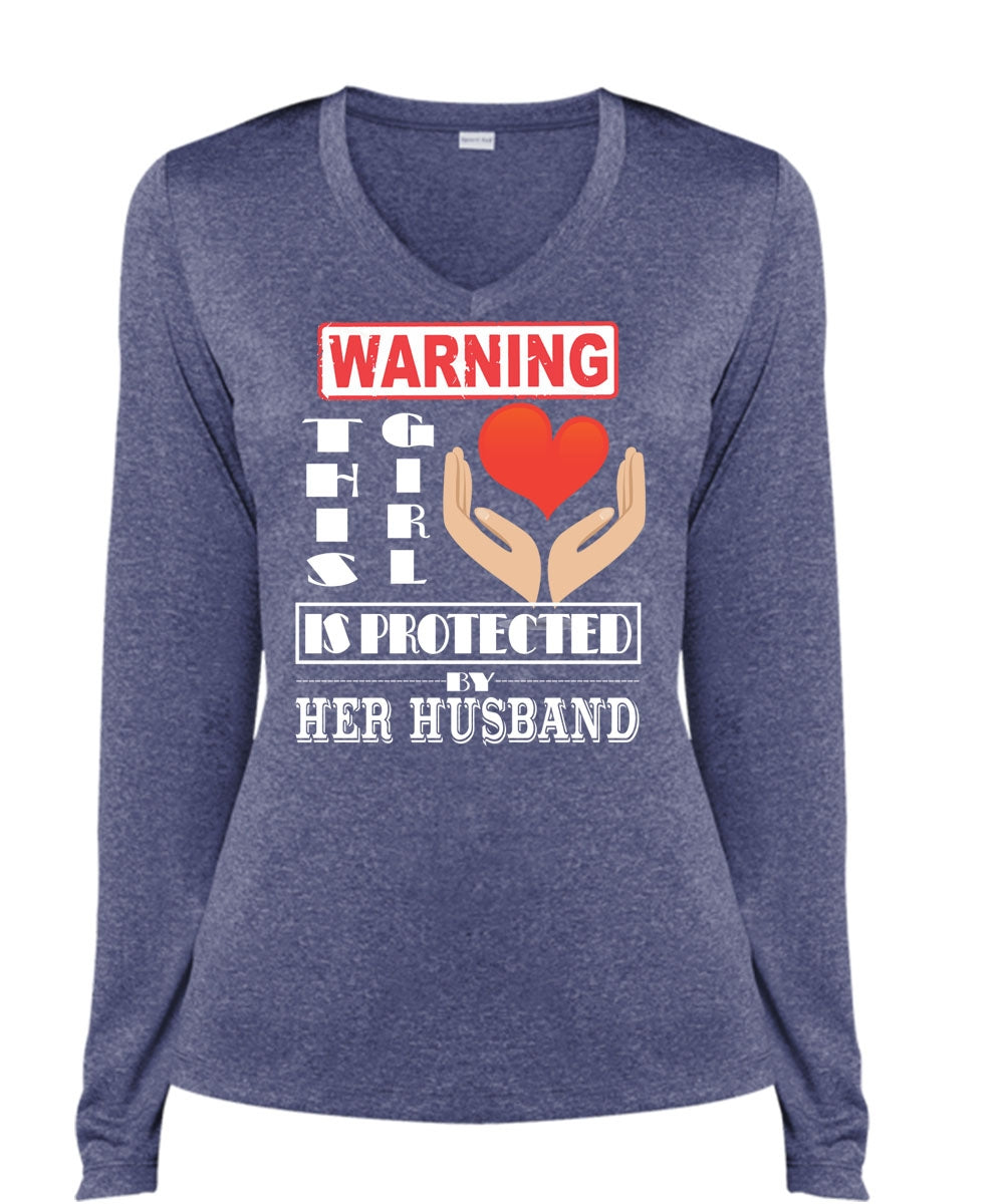 This Girl Is Protected By Her Husband T Shirt, He Is Husband T Shirt, Cool Shirt (Ladies LS Heather V-Neck)